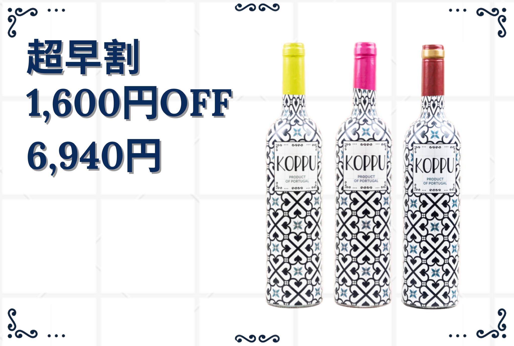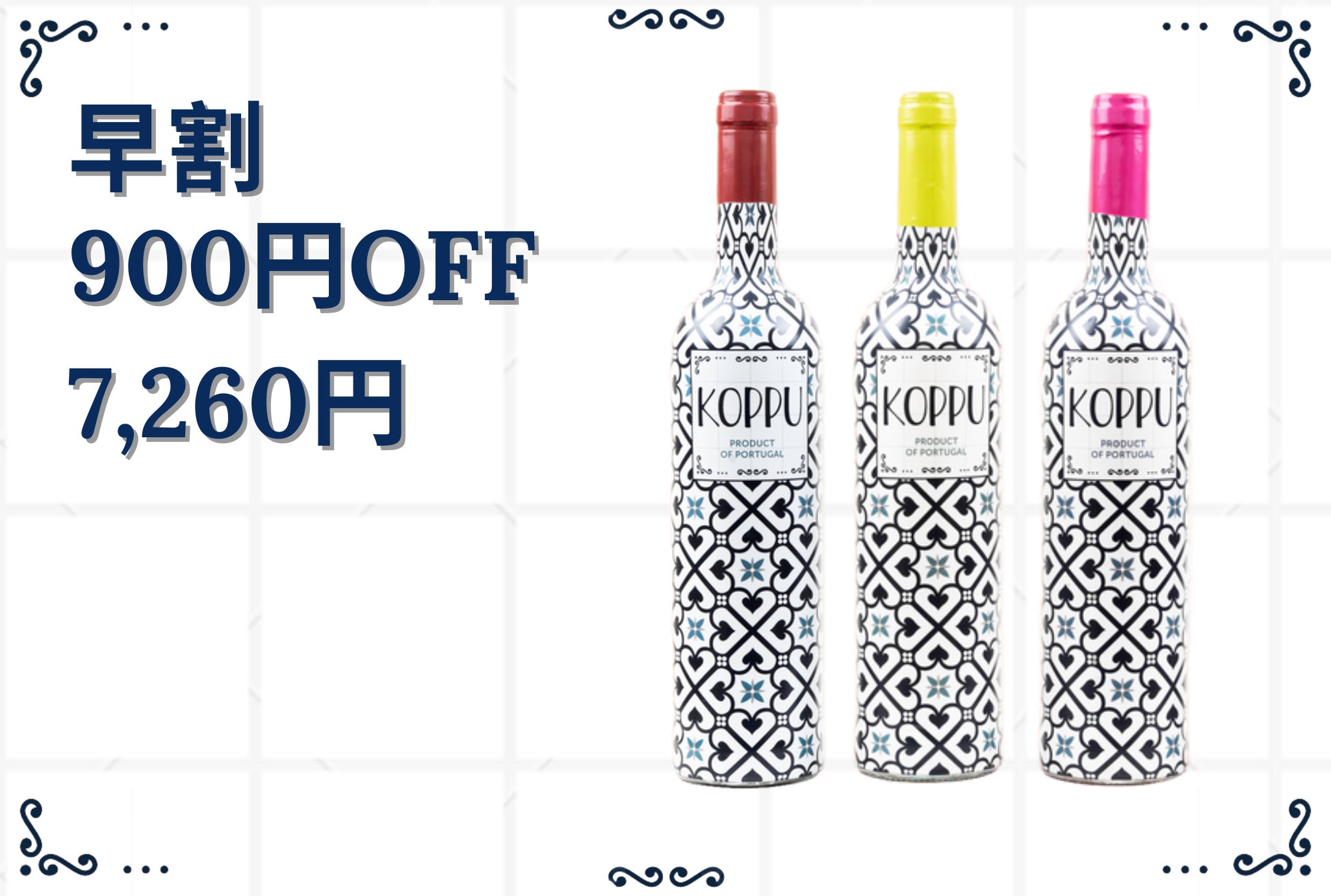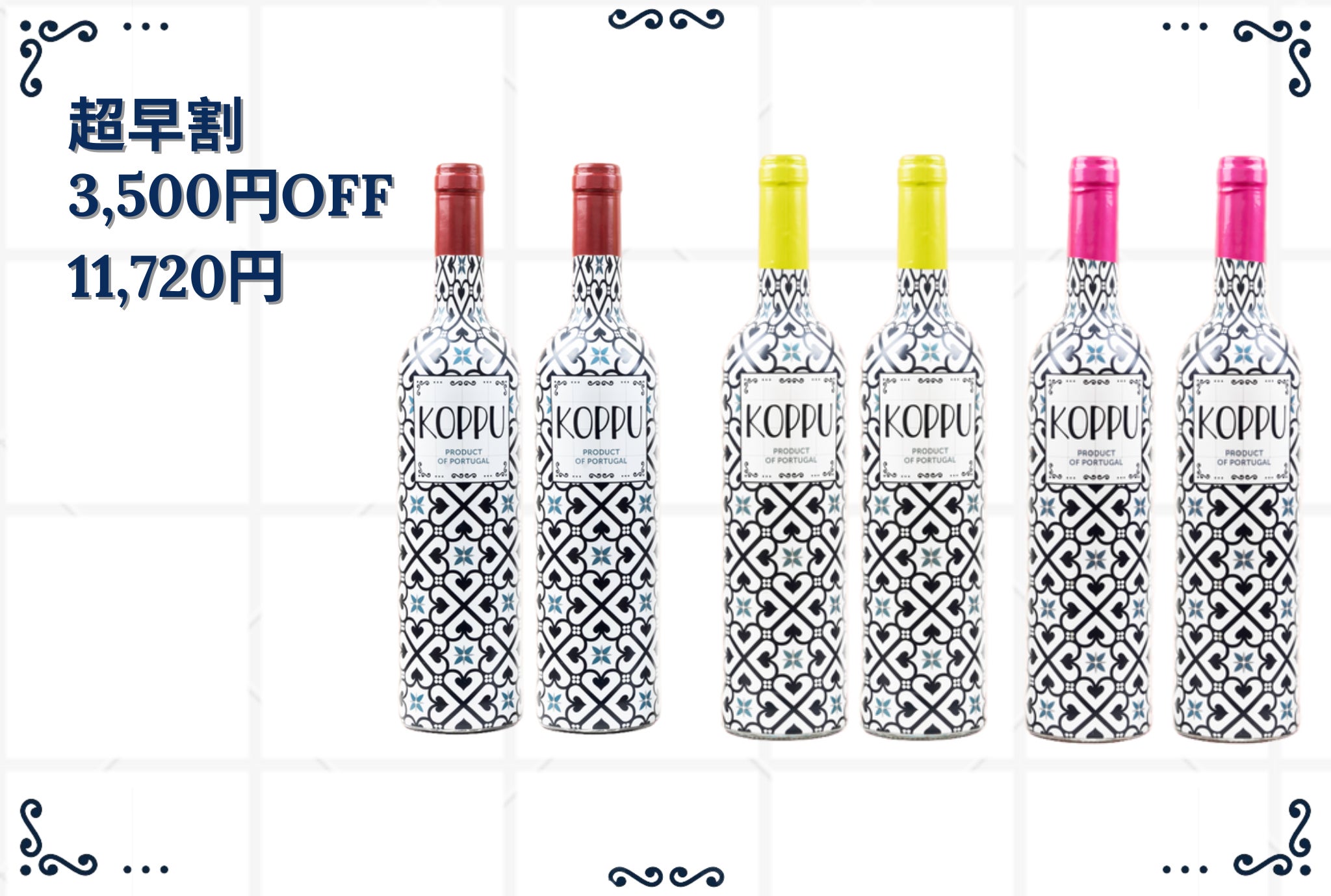 隠れたワイン大国ポルトガル。ワイン造りに欠かせない3S(Sun,Sea,Sand)が揃い、国際的に注目と期待が高まっています。その真価と魅力ある伝統文化を伝播するために造られた至福のワイン【KOPPU】シリーズ。見た目もオシャレなポルトガルタイル柄ボトルで、「ポルトガルらしさ」が手に取った瞬間から味わいに至るまで堪能していただけます。
