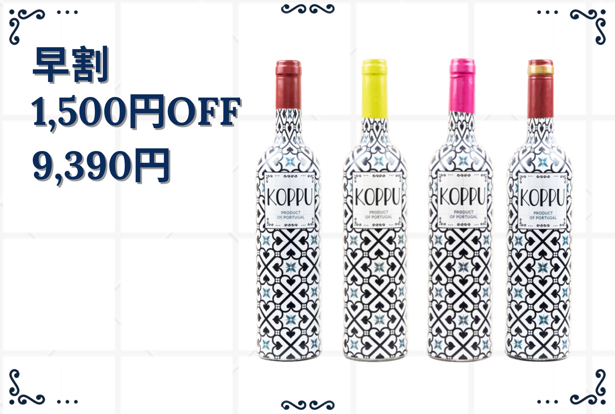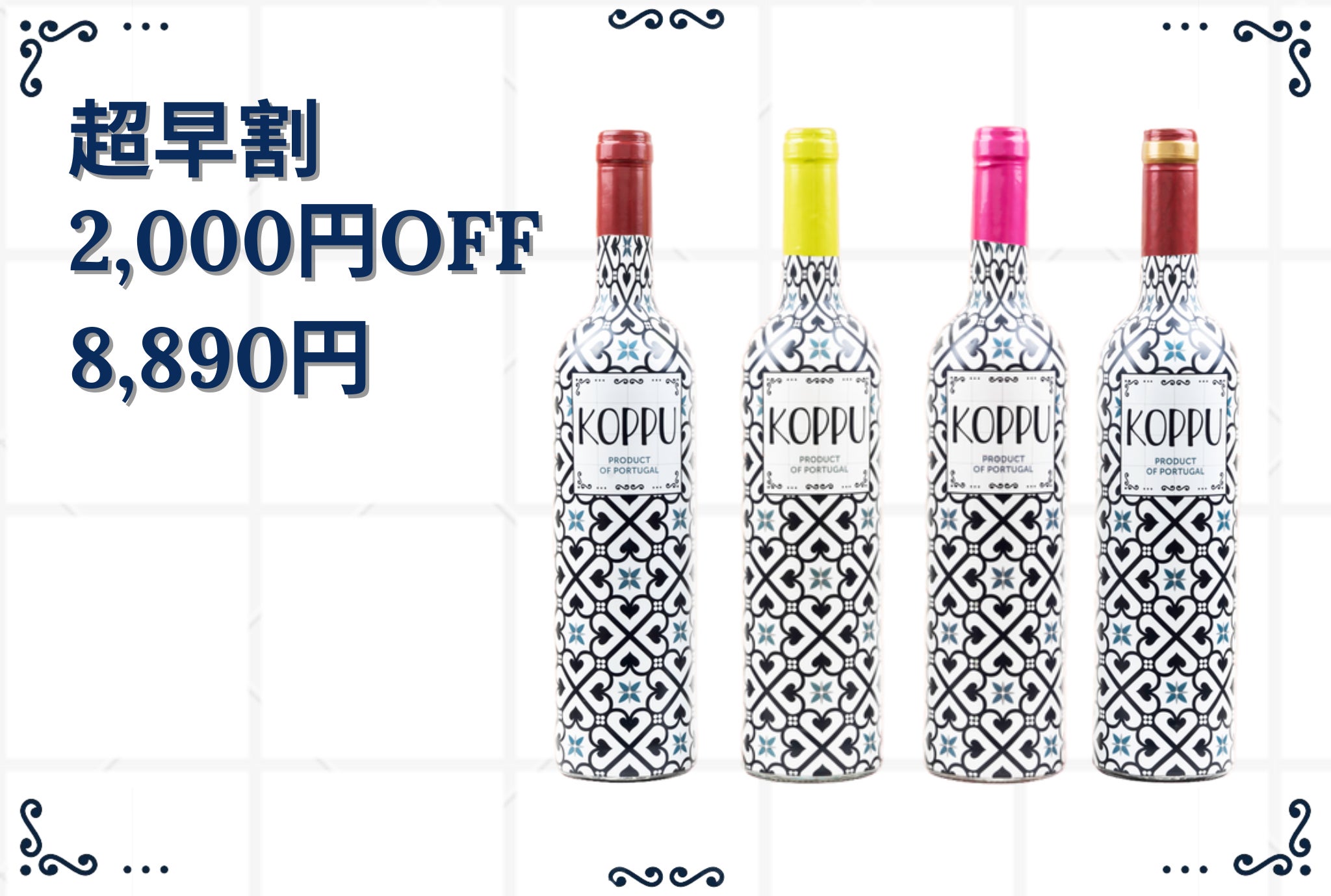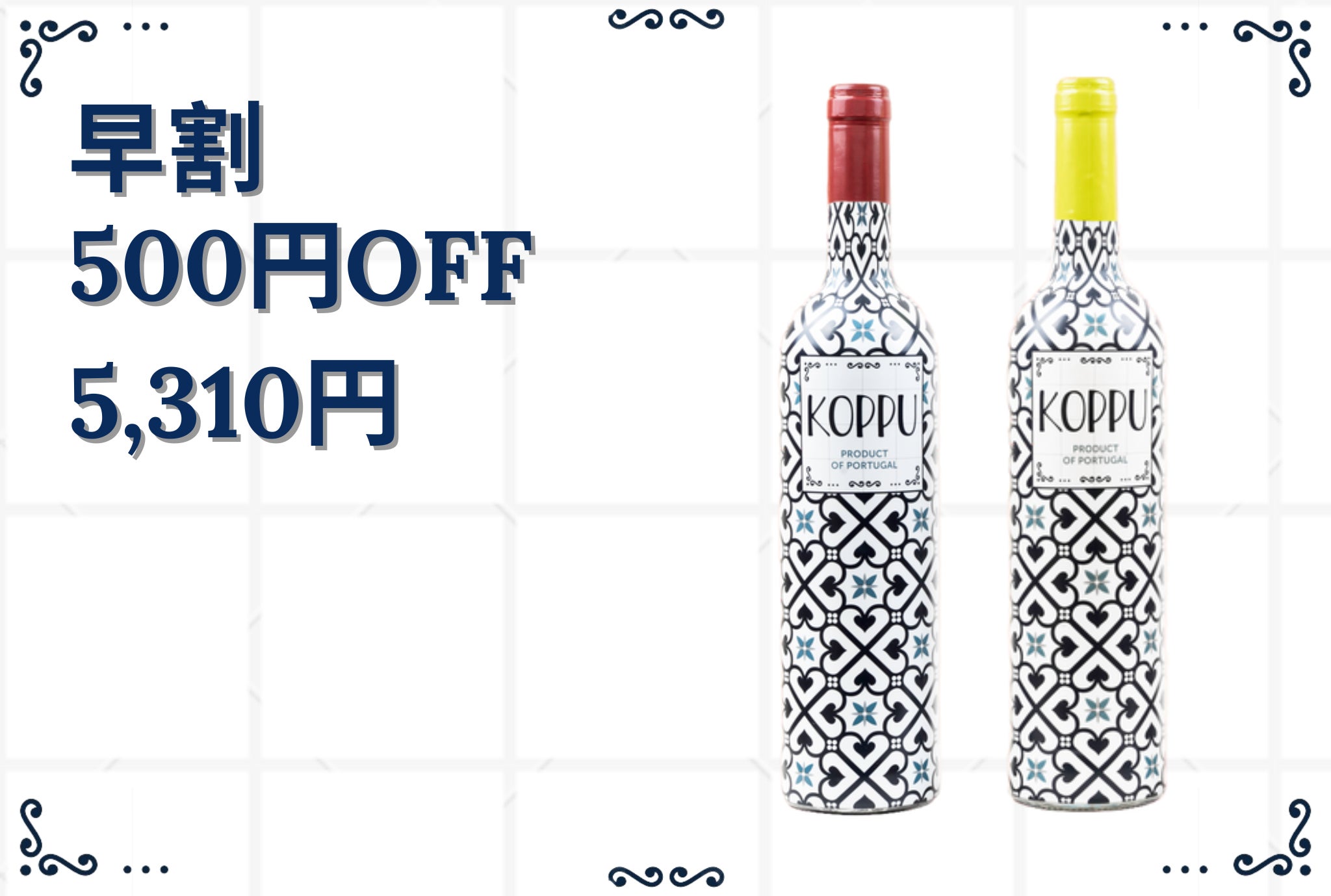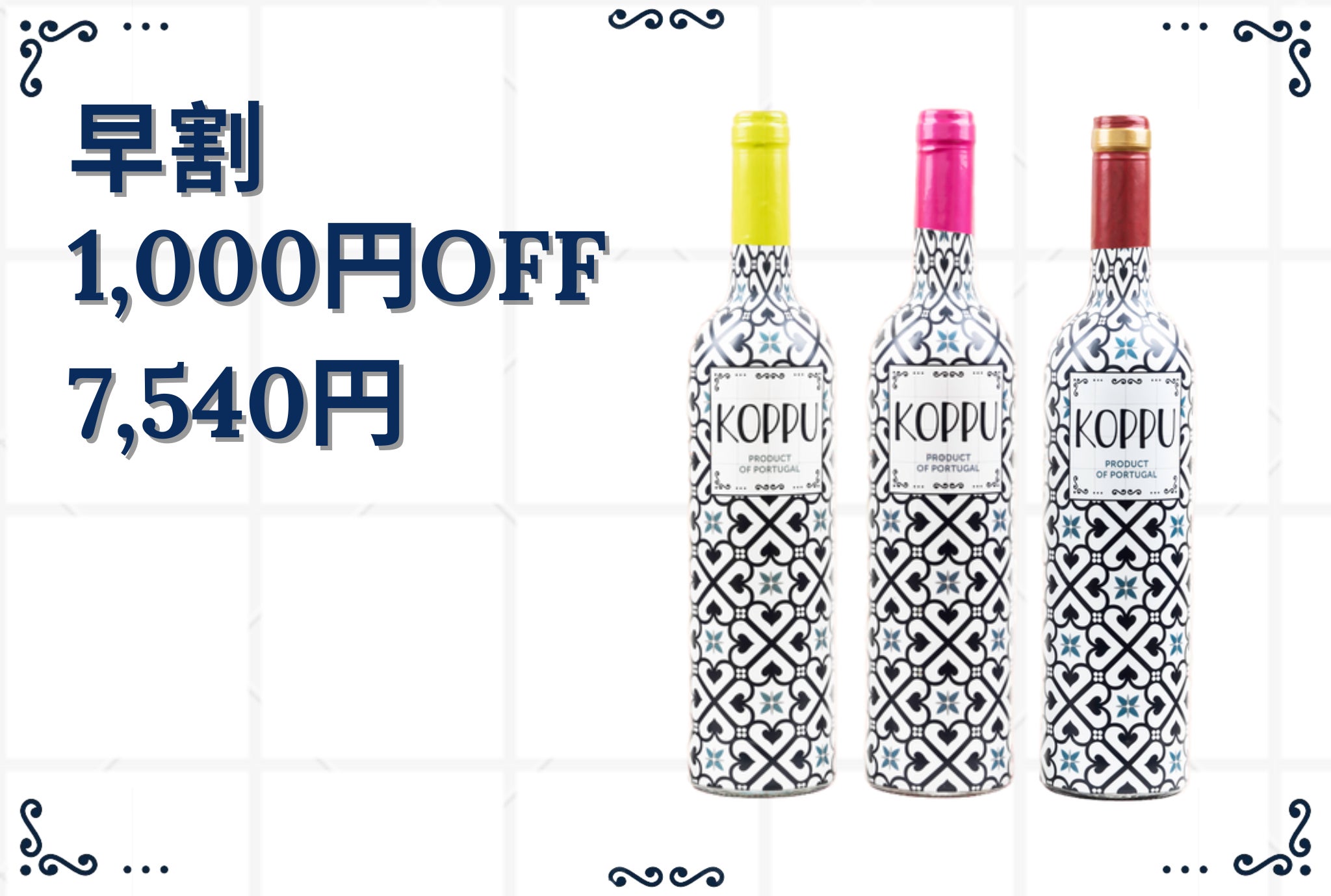 隠れたワイン大国ポルトガル。ワイン造りに欠かせない3S(Sun,Sea,Sand)が揃い、国際的に注目と期待が高まっています。その真価と魅力ある伝統文化を伝播するために造られた至福のワイン【KOPPU】シリーズ。見た目もオシャレなポルトガルタイル柄ボトルで、「ポルトガルらしさ」が手に取った瞬間から味わいに至るまで堪能していただけます。