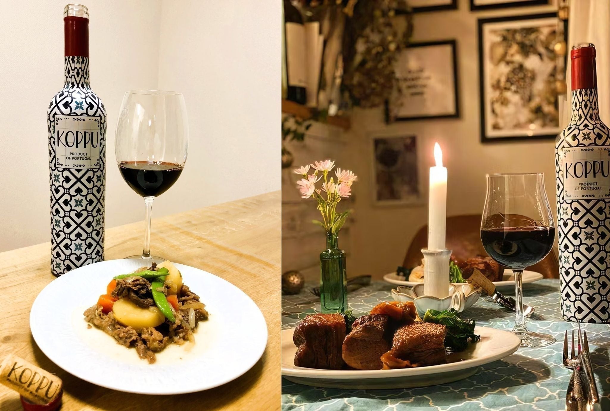 一方、【KOPPU・赤】はポルトガルと日本を繋ぐワイン、「和食に合せやすい」を意識しているので「渋みも穏やか」で、日本の食卓の日常に登場する肉ワインとも相性抜群です。タレやソースに甘さのある焼き鳥やお好み焼き(豚玉)などともよく合います。