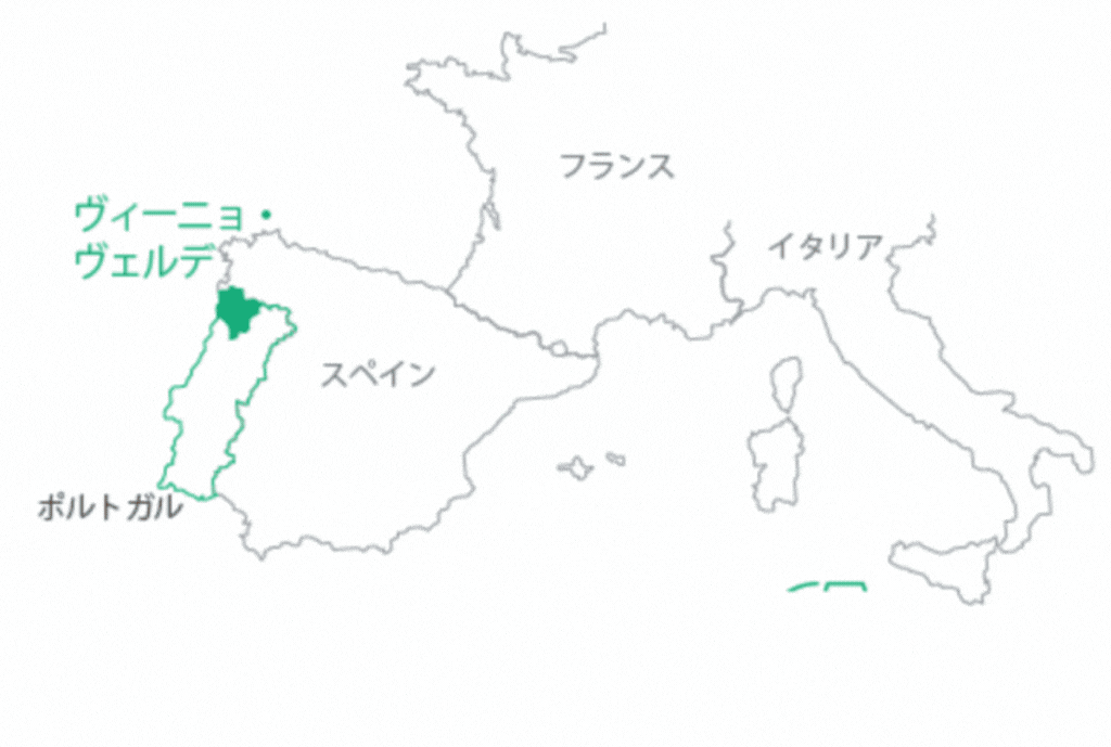 ポルトガルでは、ポルトガルでしか見ることができない、ポルトガルならではのワイン造りも行われています。そのひとつが、国の北西部、スペインとの国境を接するミーニョ地方で古くから作られている「グリーン・ワイン」。ポルトガル語では「ヴィーニョ・ヴェルデ」と呼ばれ、産地の名前でもあります。赤やロゼも作られていますが、メインは白ワインで生産量の90%を占めています。