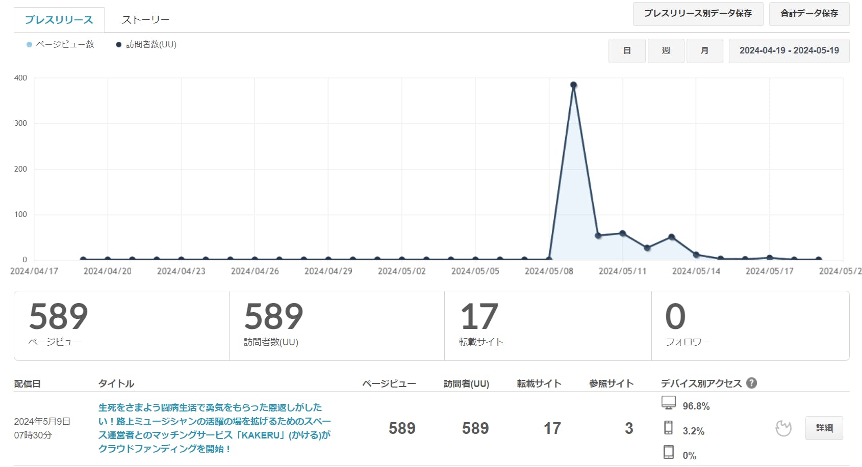 PRTIMESに掲載した記事は約10日間で589PV、