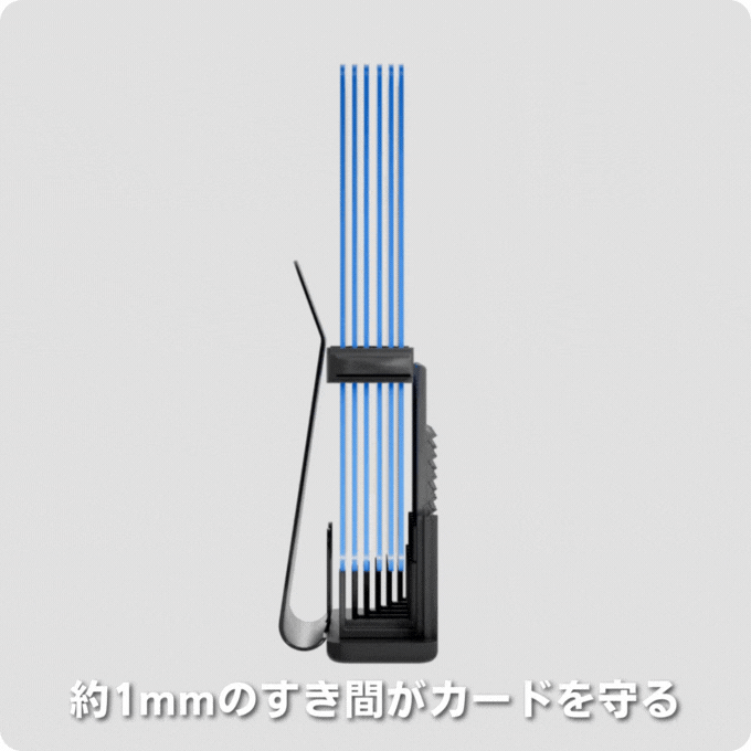 6枚までのカードをそれぞれ独立したカードホルダーに収納することが可能、カード同士に約1mmのすき間が生まれることでカード同士密着することが無くなり、取り出す度にカードの傷を心配する必要がなくなります。
