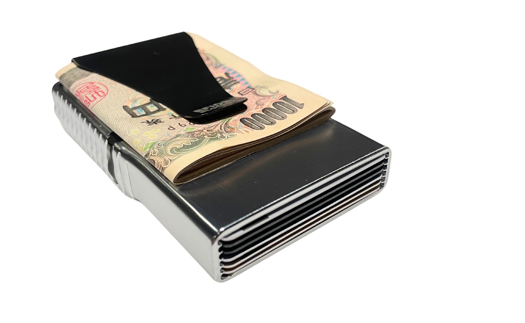 古いクリップデザインを根本的に見直し、強力で一貫性のあるデザインに。自社の収納力テストでは、三つ折りの一万円札10枚をクリップに楽々と挟むことが出来ました。