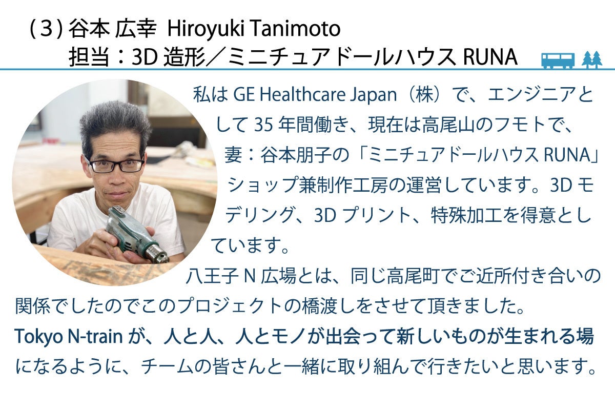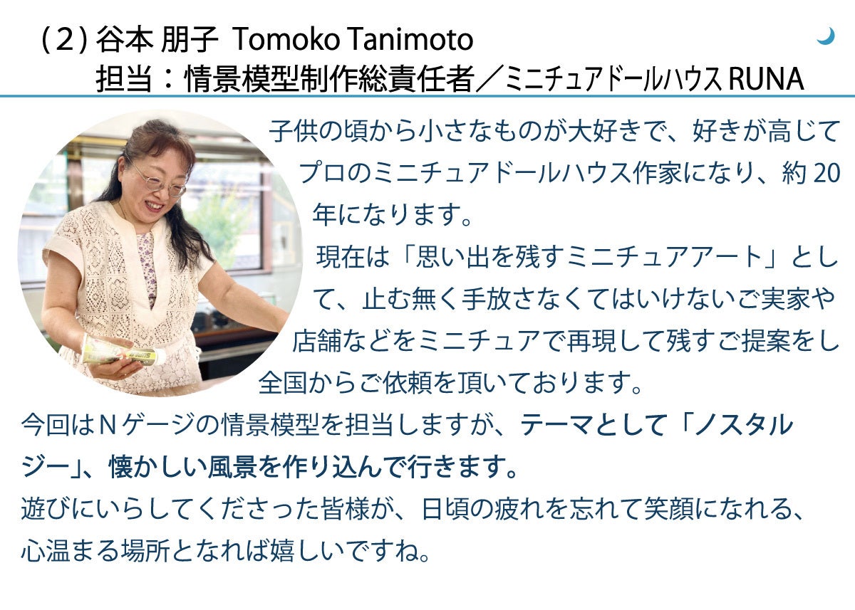 鉄道愛好家の皆さんが楽しめる施設ということで、八王子の魅力ある場所が復活するということはすごいと思います。 しかも、ミニチュア作家の情景模型で非日常の空間を体感できるのは、Tokyo N train ならではと期待しています。 鉄道に知識のない私でも楽しみで仕方ありません。応援しています。