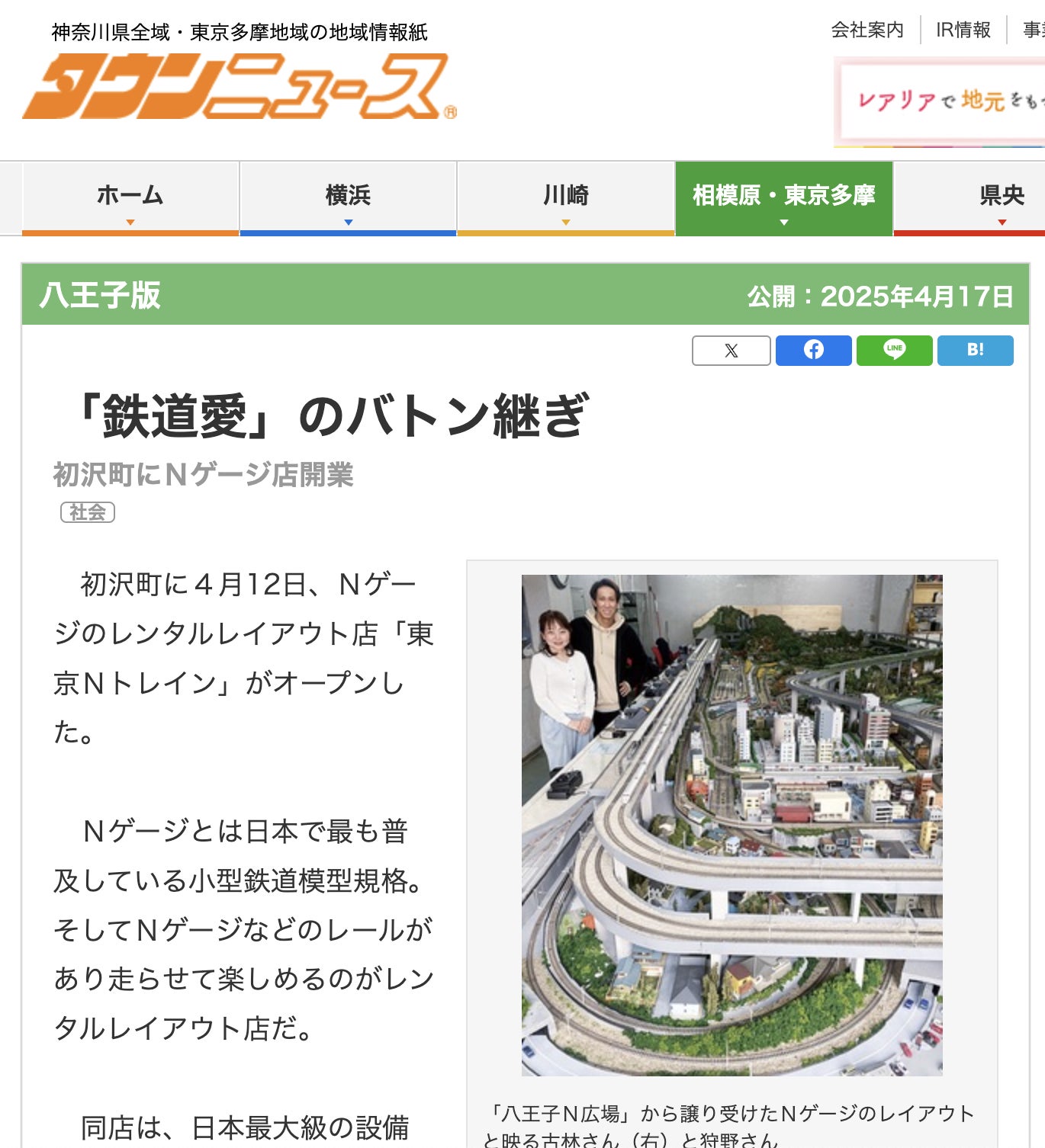 ビッグスケールのNゲージとジオラマの世界を作り上げて八王子の魅力を更に引き上げる新たなチャレンジ!素晴らしいですね!Nゲージ好きな大勢の方々が八王子に集まり盛り上げていただけるのは大歓迎です♬同じ中野上町の『高尾ポテト』も応援してます。