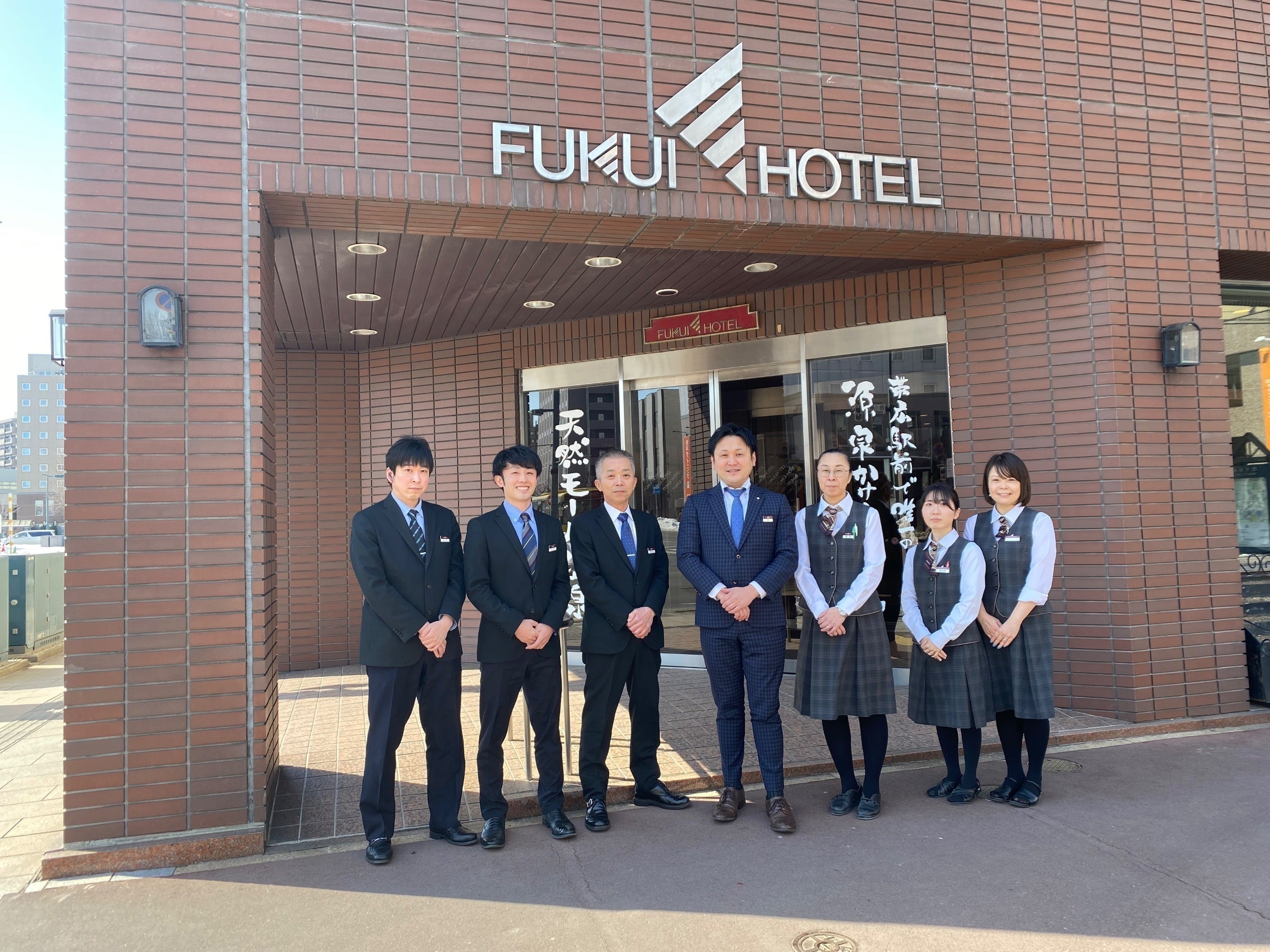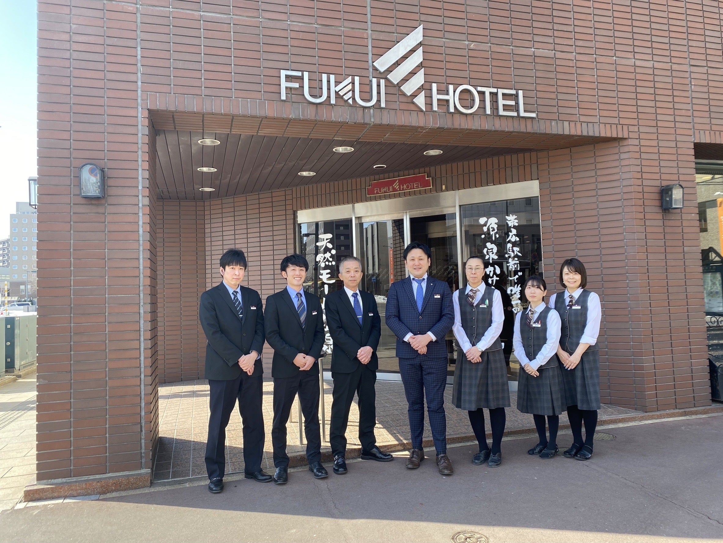 ふく井ホテルメンバー (左から2番目プロジェクトリーダー小松、真ん中ふく井ホテル代表取締役社長 林 佑太)