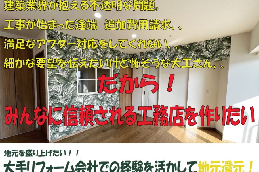 ならば、自分で「みんなが安心してお願いしてもらえる」工務店を作ろうと考えました。