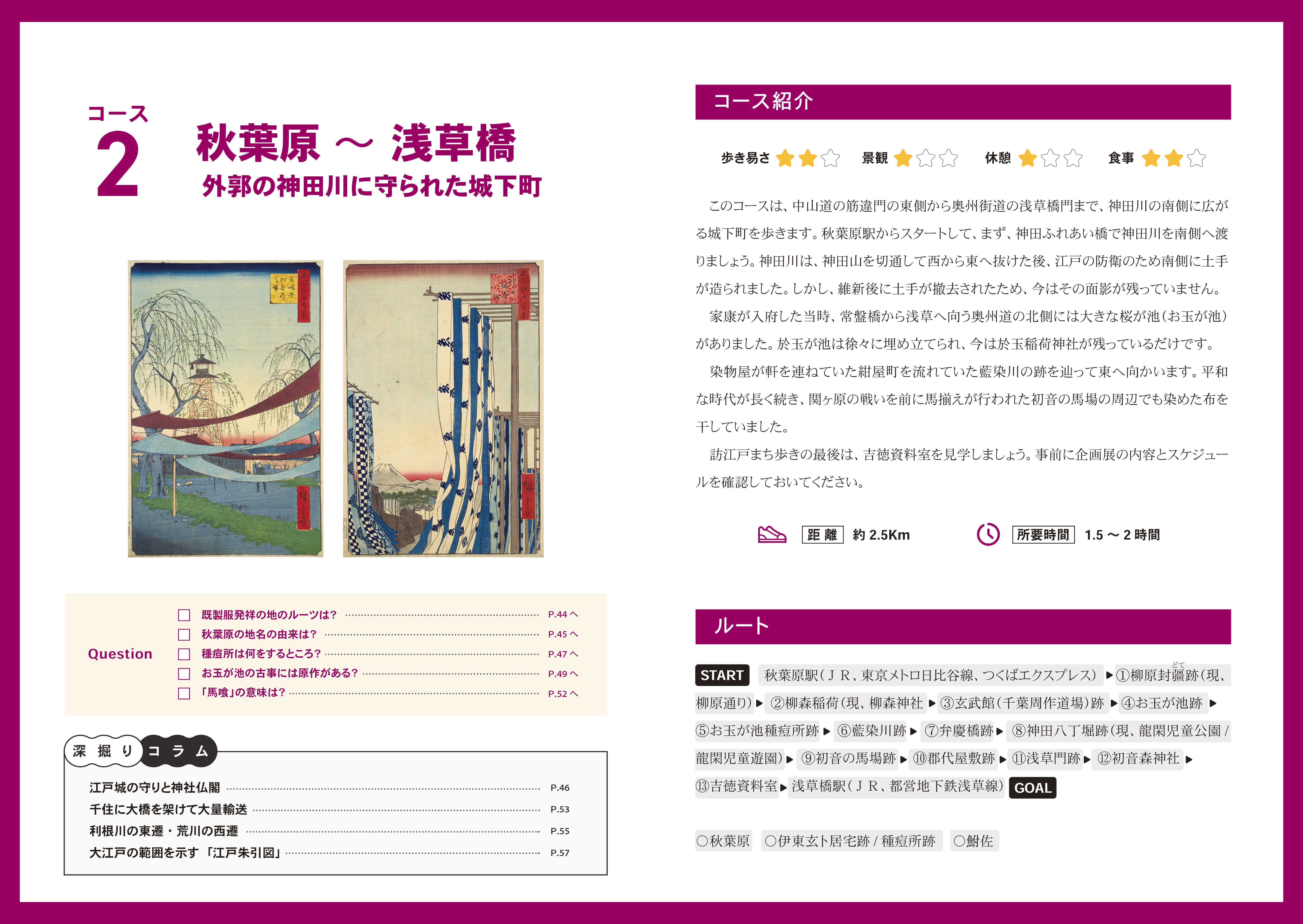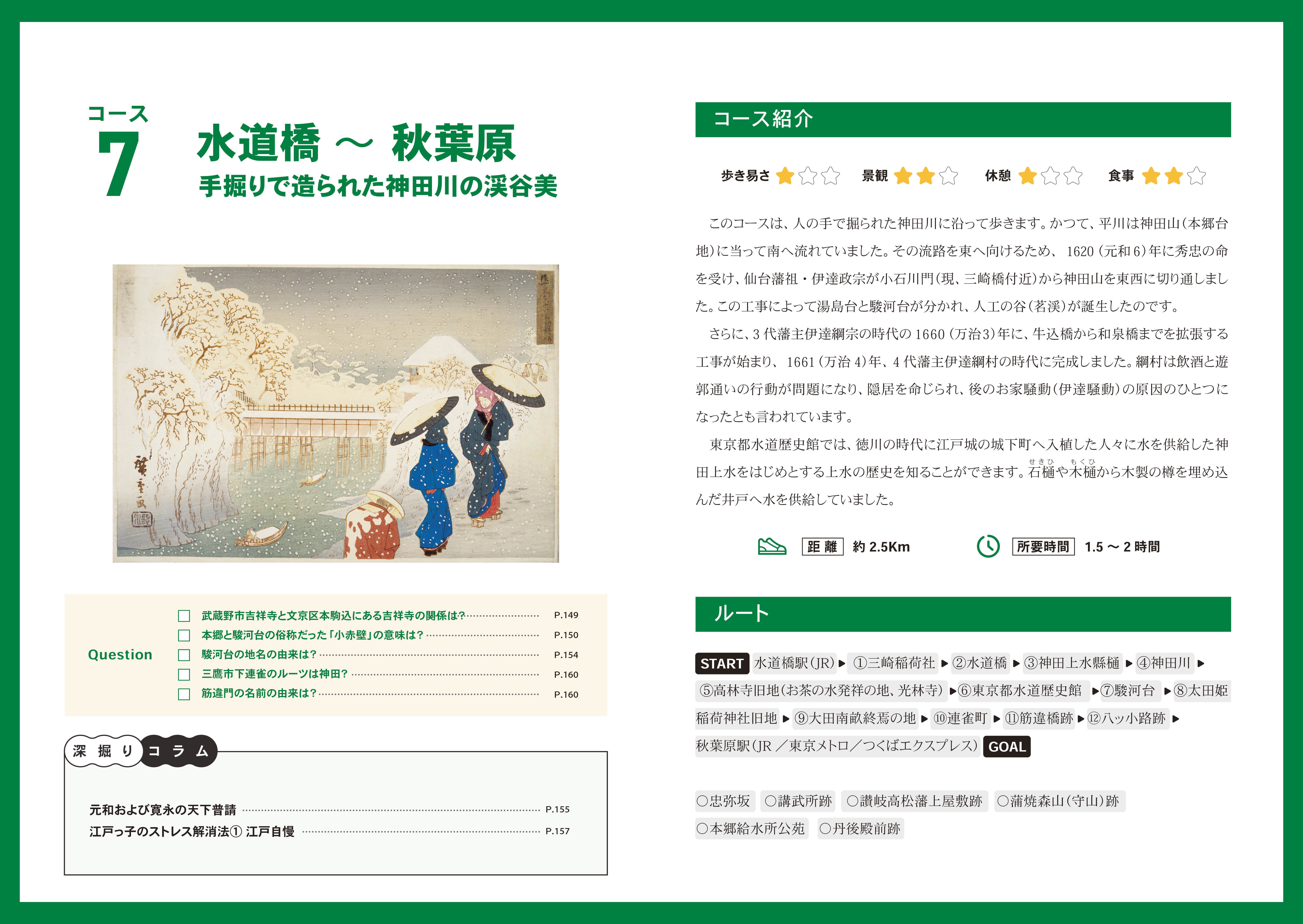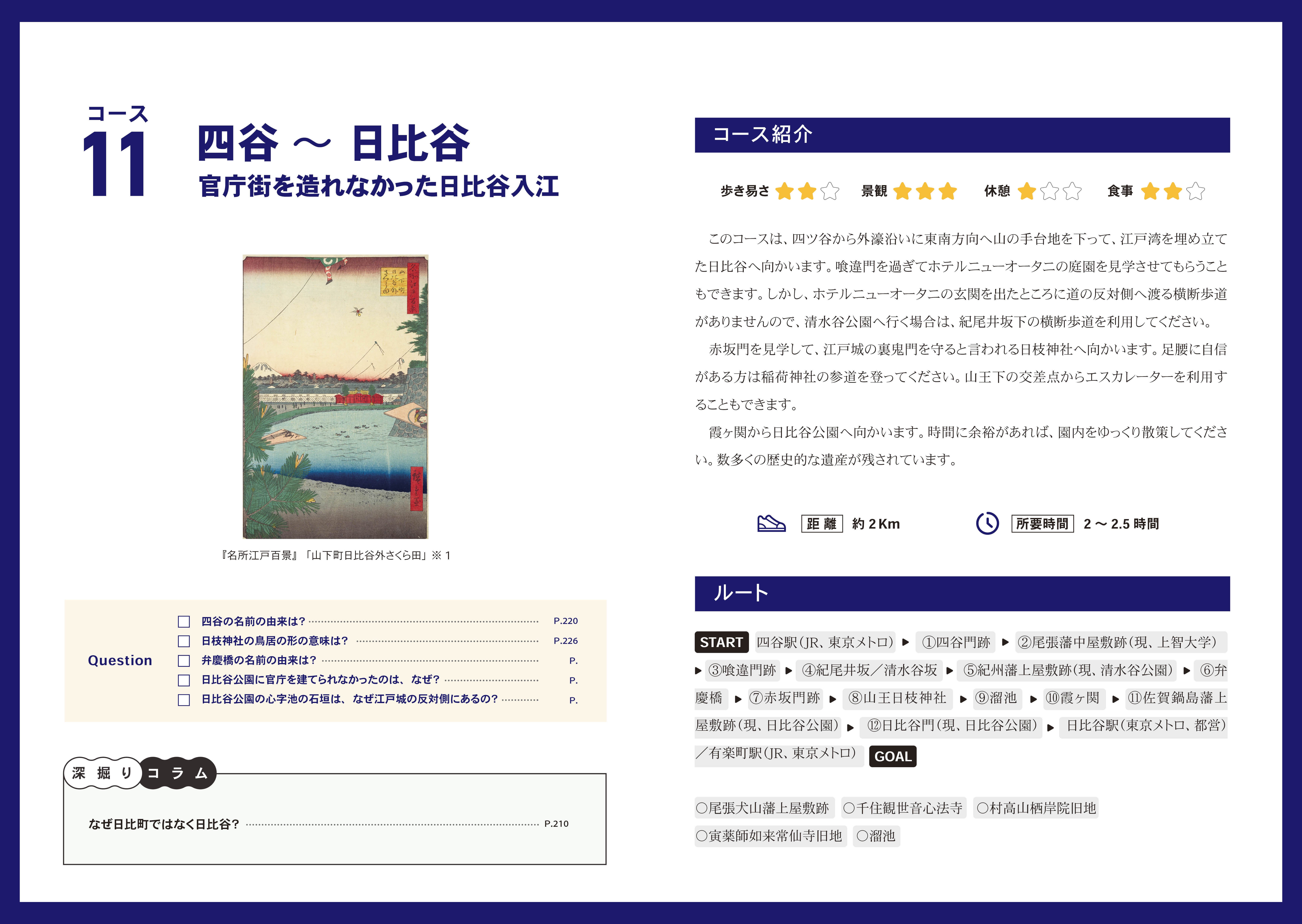 『訪江戸まち歩き 東京観光ガイドブックVol.Ⅰ』では、この「歴史の駅」をたどりながらまち歩きを楽しむことができるようにルートを設定しました。スタート地点をJRまたは地下鉄の駅で、2時間から2.5時間で回れます。ガイドブックの読者が自分でルートをアレンジできるように、ルート外の「歴史の駅」も紹介しています。