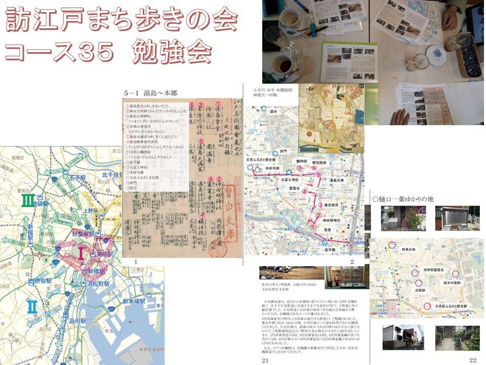 4月27日(土)14:00から訪江戸五十三名路(迷路)のコース35(秋葉原(湯島)~本郷)の勉強会を開催しました。『江戸名所図会』巻之五に載っている聖堂(湯島)から、本郷追分あたりまでのエリアです。5月11日(土)にまち歩きをする予定です。