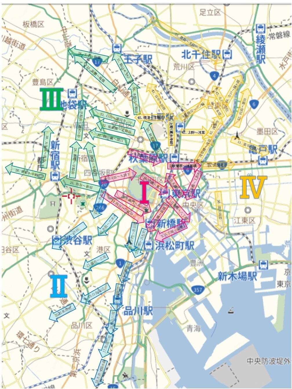 コース1.日本橋~神田 コース5.八丁堀~築地 コース6.日本橋~新橋 コース7.水道橋~秋葉原