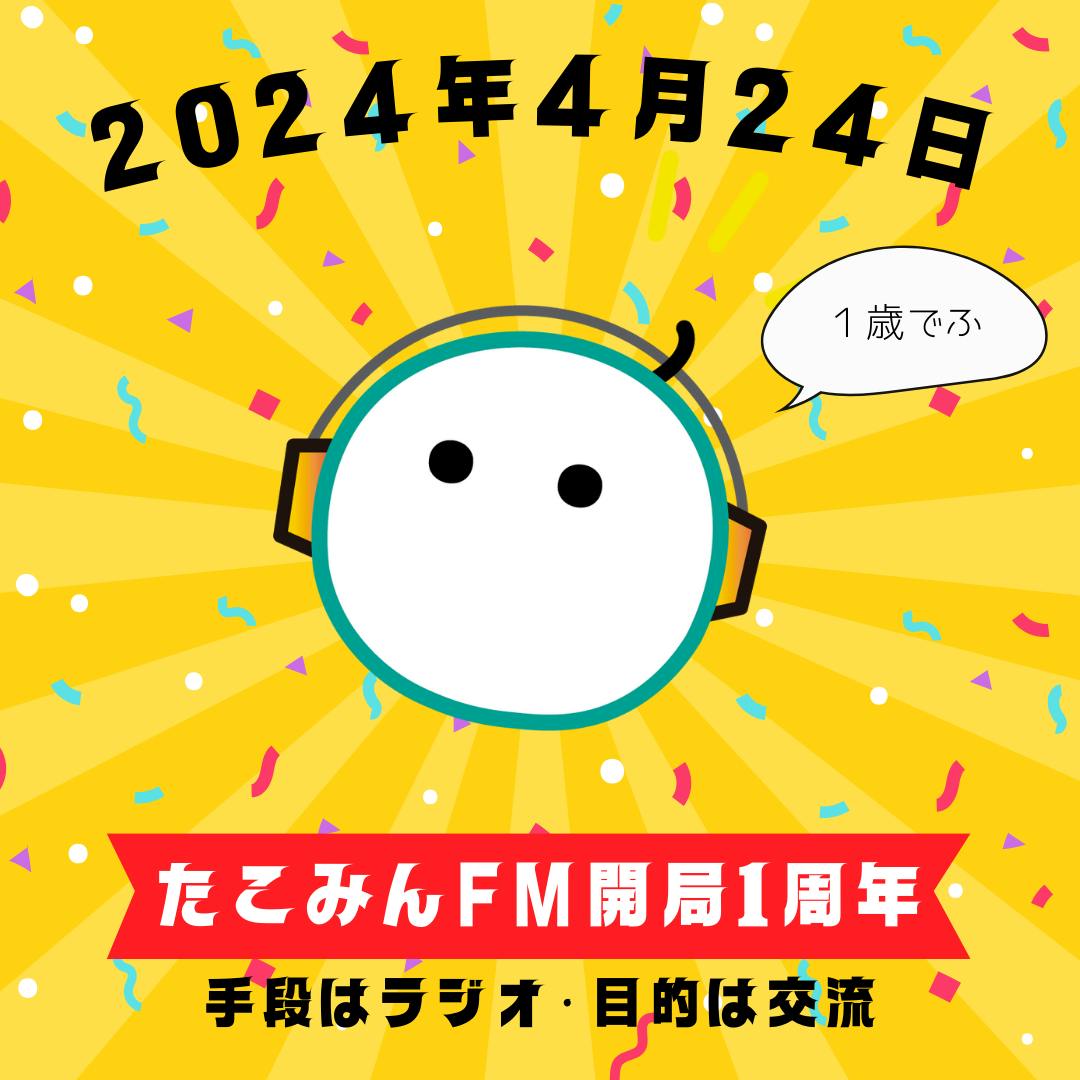 たこみんFM1周年!!おめでとうございます!!この一年を振り返ると、本当にいろんなことがあったと思います。代表取締られ役としては大変なこともあったんでしょうが、おかげさまで面白くて楽しくて、未来が広がるようなワクワク感をたこみんFMで感じることができました。