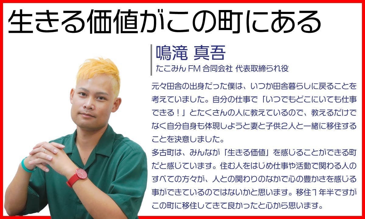 はじめまして。2023年4月24日に千葉県多古町に開局したラジオ局「たこみんFM」代表取締られ役の鳴滝真吾(なるたきしんご)と申します。