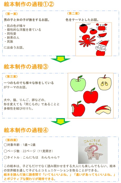 ※絵本制作は西川さんともご相談しながら進めました。絵本制作の過程でどのように絵本が変化していったのかについては写真をご覧ください。