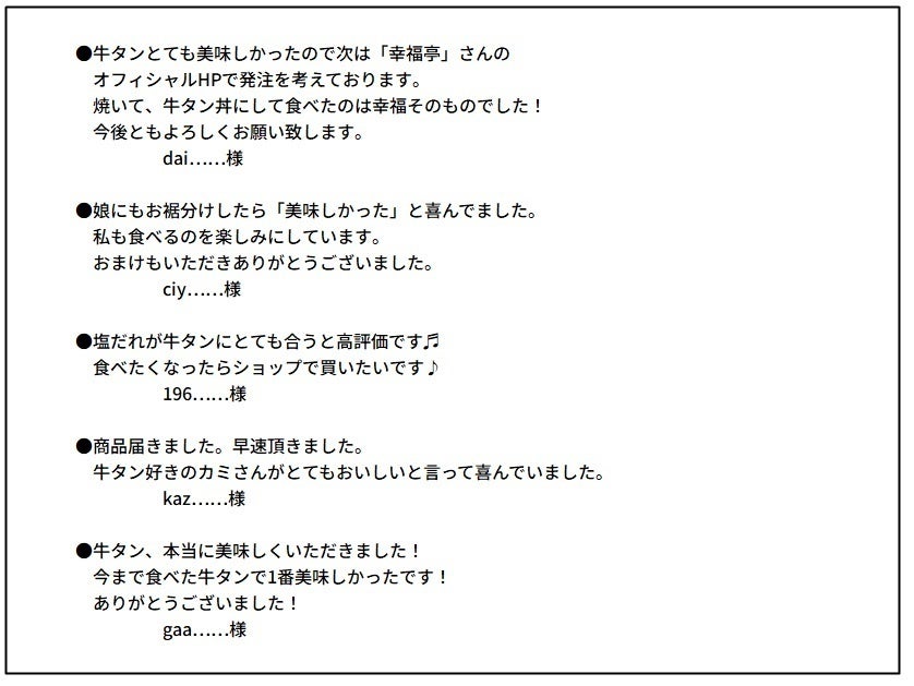 リターン商品の牛タンをお召し上がりくださったご支援者様から
