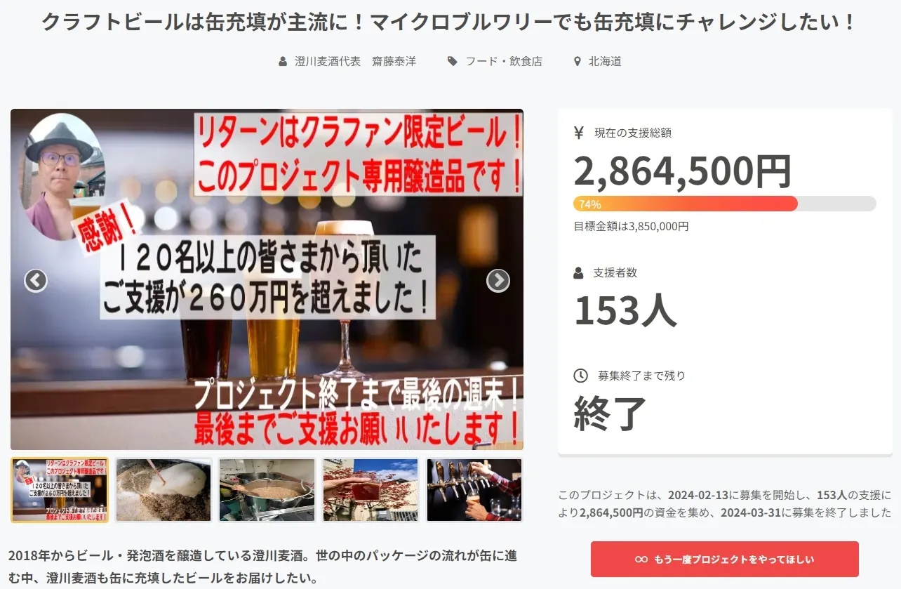 目標金額を目一杯に設定したこともあって、100%には至りませんでしたが、金額にして、2,864,500円、153人もの方にご支援をいただけて、私の中では大成功のプロジェクトになったと感じております。