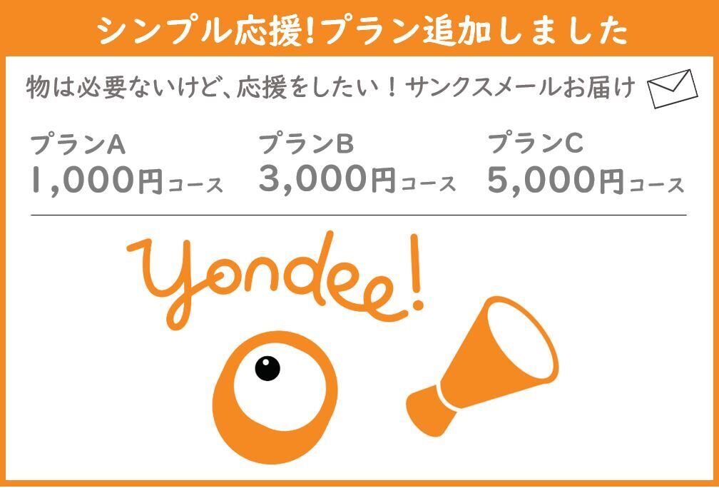 2024/12/06 10:46物は必要ないけど取り組みを応援をしたい!というお声をいただき、「シンプル応援!プラン」を追加いたしました! 1,000円、3,000円、5,000円でリターンを購入(サンクスメール)いただけます。ご検討いただけますと幸いです。 もっと見る