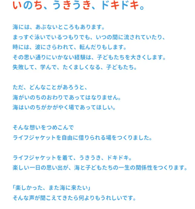 みなさまの寄付金で、全国の海水浴場にライフジャケットレンタルステーションを設置しよう!