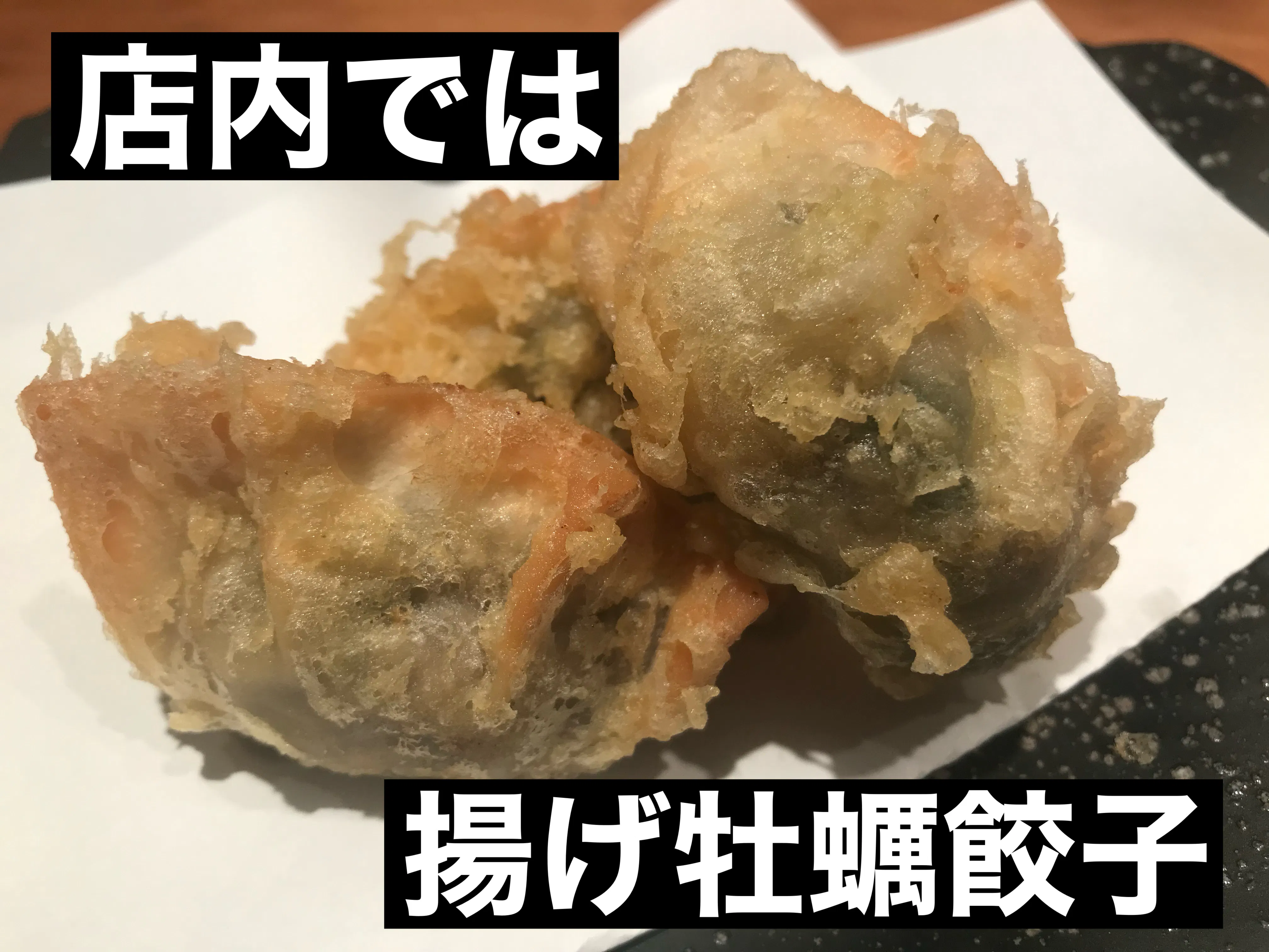 沢山のご縁があり石川県七尾市に移住したのだから、その証を作りたく、地元の食材で地元の名産品なるものをと思い色々試作を繰り返す中、TVでたまたま全く違うジャンル同士が組み合わさると面白い事が起きる…というのを観た時に、ん?こっちに牡蠣を食べに来る人が沢山いる。それを自分の大好きな餃子にしてみたらどうだろう?口に入れたら「ザ・牡蠣」っていうのが作れないかと試行錯誤を繰り返し、やっと自分のイメージ通りのものが完成しました。 当初は、お店で提供し昨シーズンからはオンラインショップでも販売し店内では揚げ牡蠣餃子がご来店のお客様のほとんどから注文をいただけるようになりました。