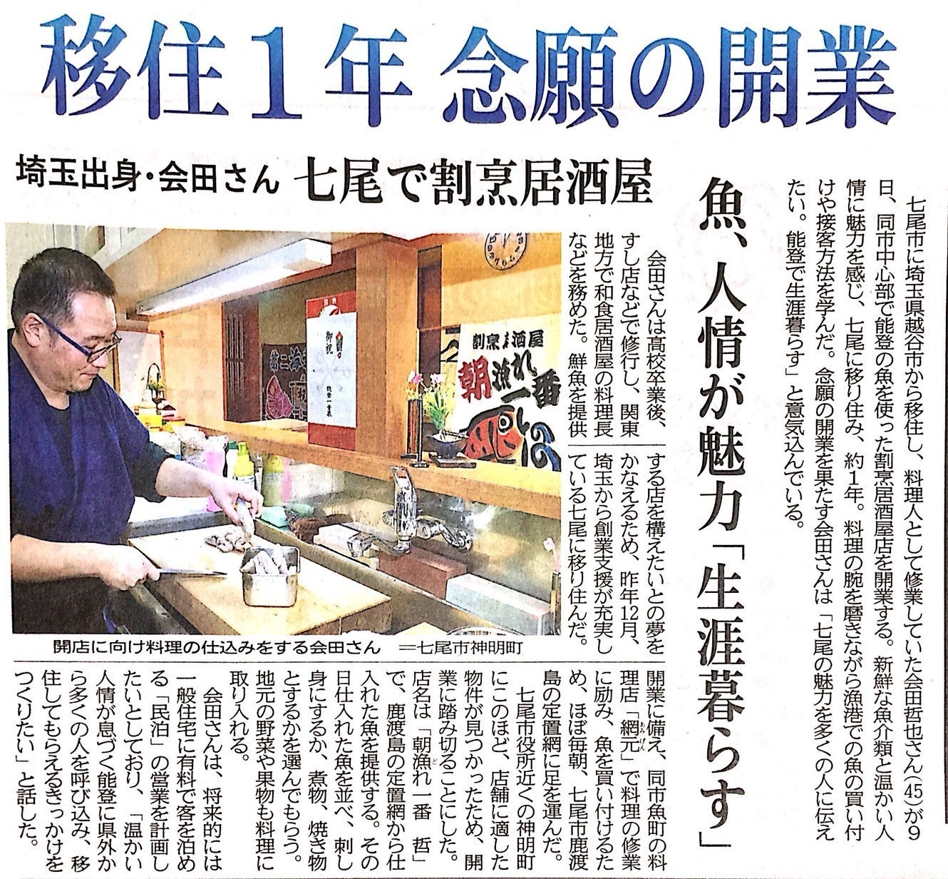 私は埼玉からの移住者ですが大好きな七尾で素晴らしい地元食材を広める役に立ちたい。