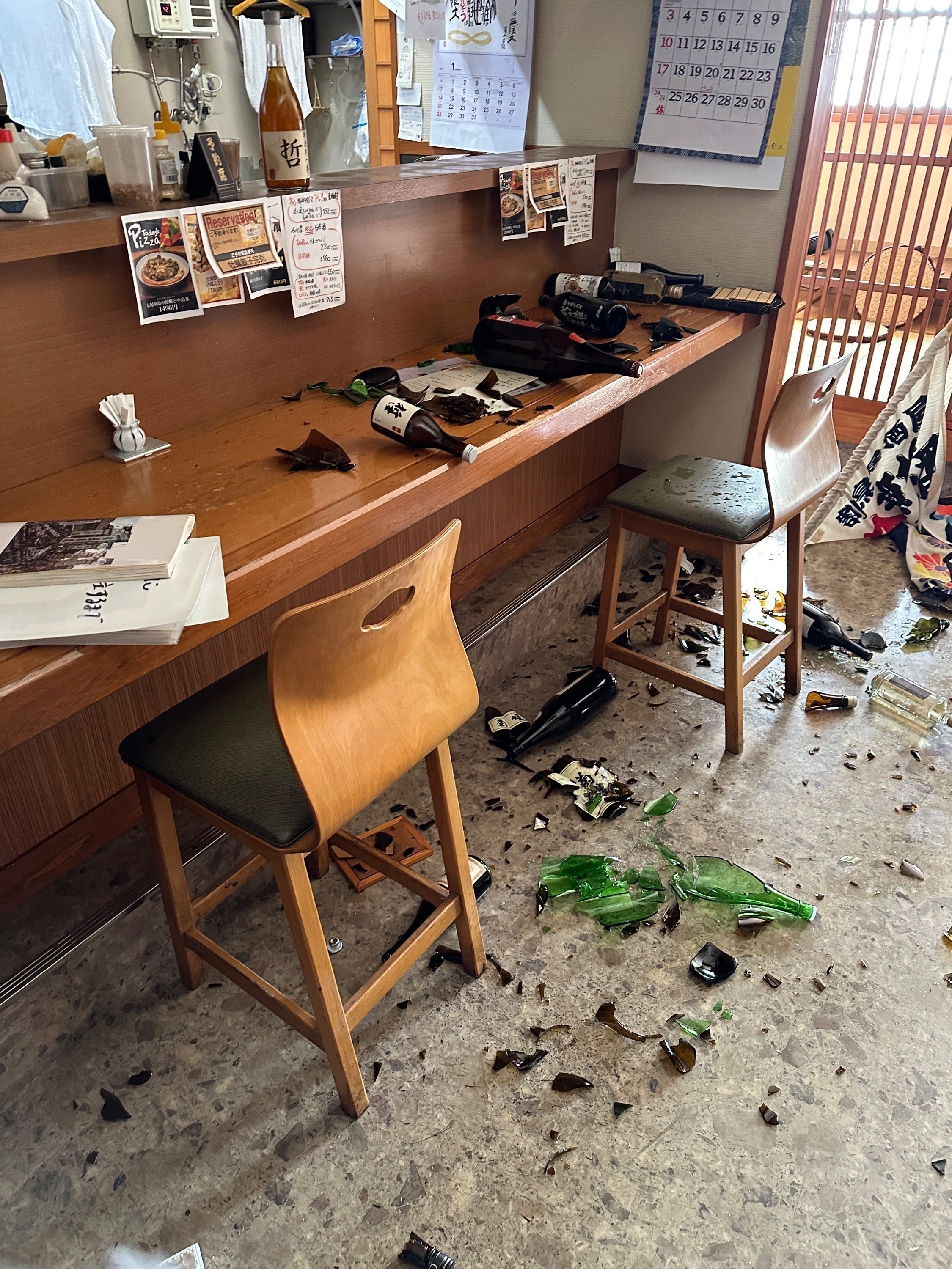 今回の能登半島地震で当店も壁のひび割れ、床の盛り上がり、電化製品破損、お酒や一升瓶等が割れて散乱と被害を受けました。