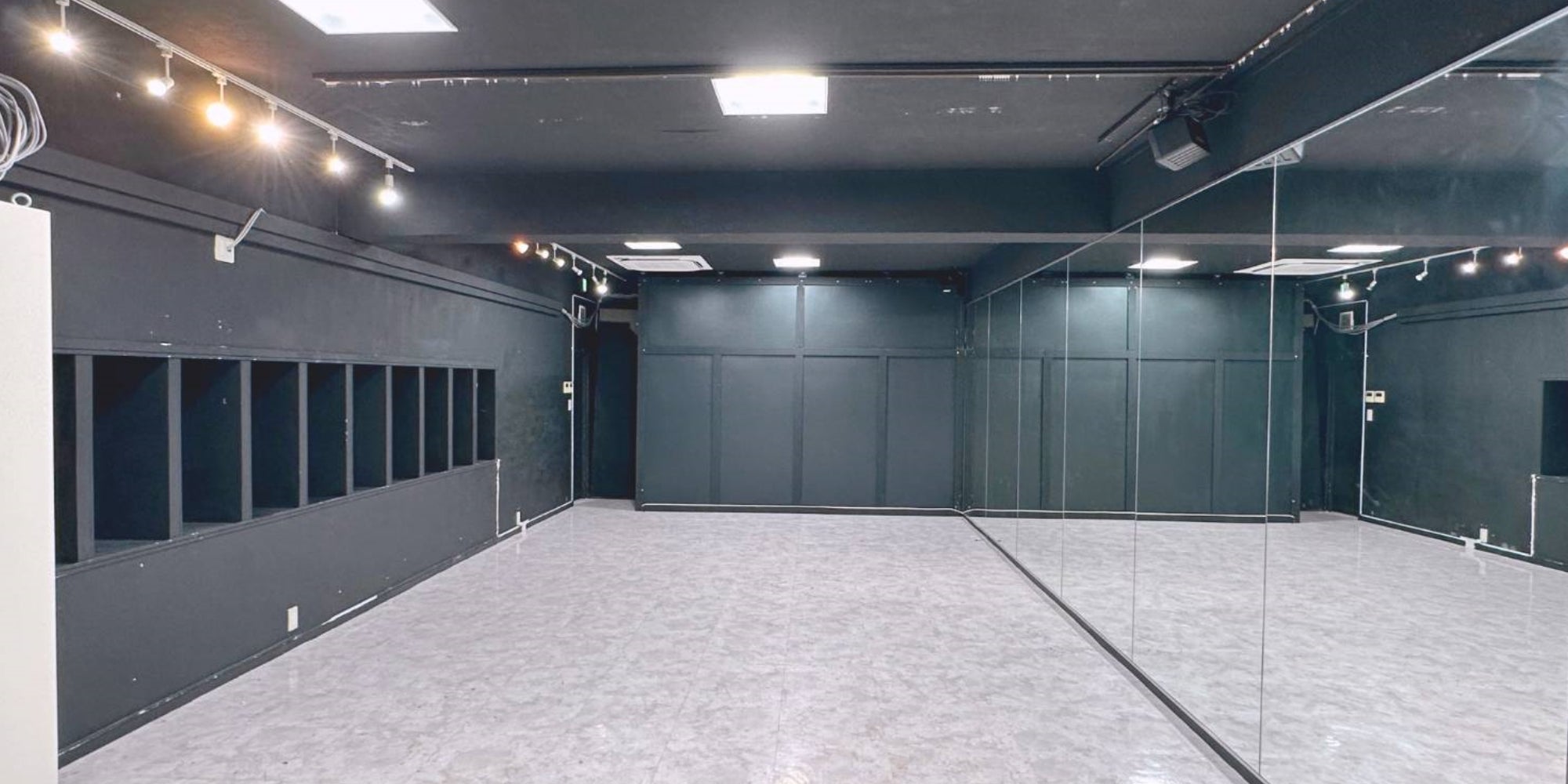 レンタルスタジオは、新宿駅から埼京線でたった13分の十条駅から徒歩1分のところにあります。50㎡以上の広々スペースで前面鏡張りで、ダンスやアイドルのレッスンにピッタリです。こちらも手作業で作り上げて本年3月に開業しましたが、まだまだお客様はいらっしゃいません。