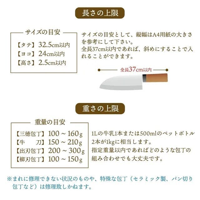 ※大きさの目安として、刃渡り24cm以上の刃物はポチスパ専用BOXには入りません。