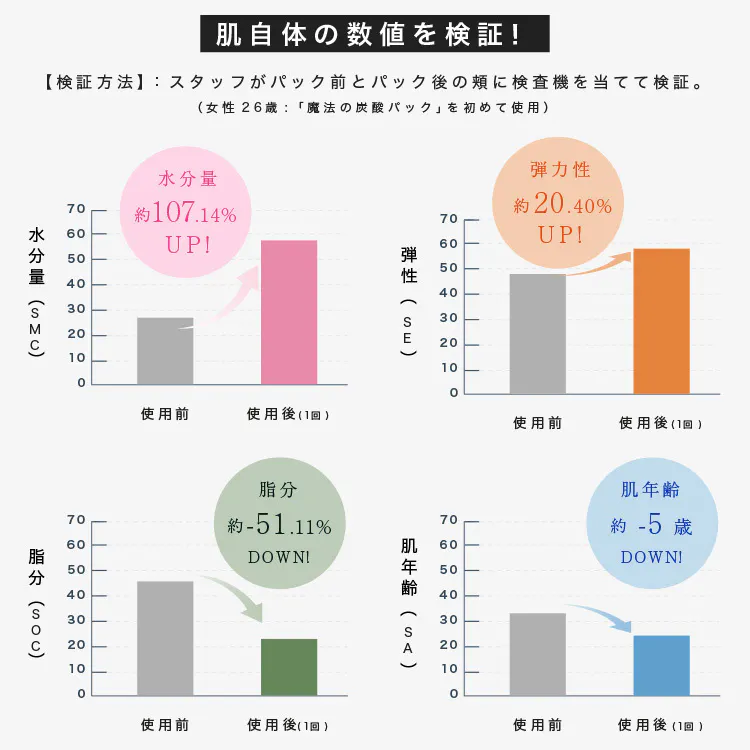 その名の通り、1度の使用で効果を実感いただける、まさに魔法の炭酸パック!
