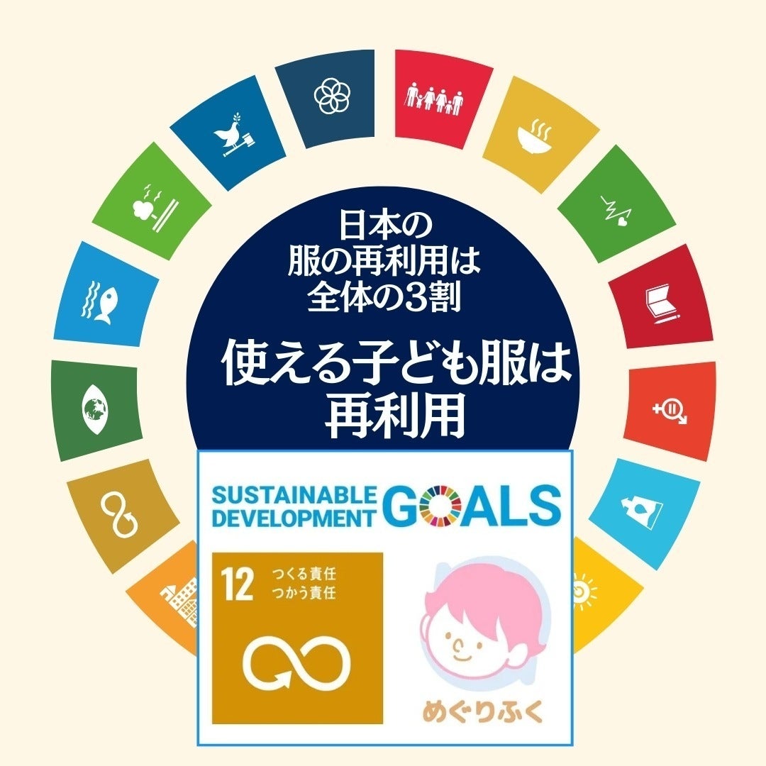めぐりふくではすぐにサイズアウトしてしまう子供服を再び社会に戻せるお店として運営し、SDGsの目標の1つである「つくる責任つかう責任」に取り組んでいます。