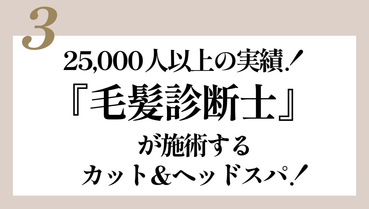 毛量やハリ・コシを高める施術でも、女性の体質を研究して生み出した当サロンオリジナルの育毛プランになります。