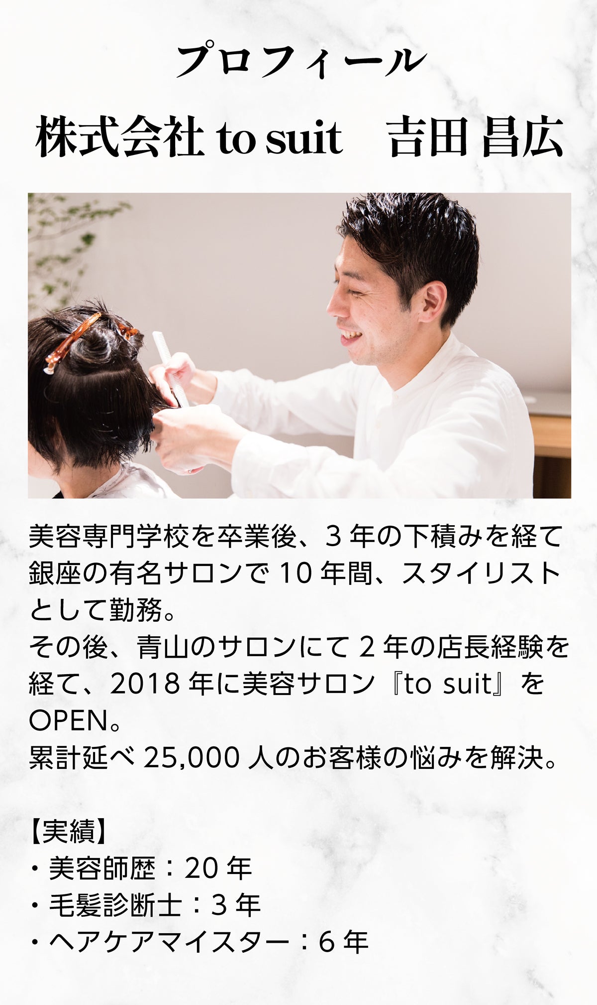毛髪診断士として、これまで2万人以上の髪の悩みを解決してきました。