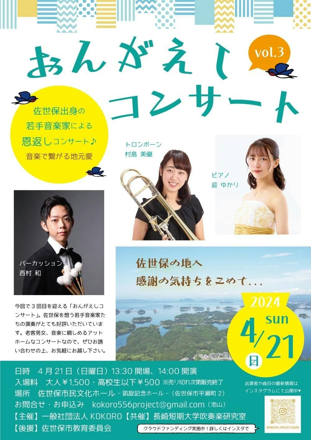 私自身、この佐世保で音楽を通して様々な経験をし、沢山のことを学び、人生がより豊かになったと思っています。そんな佐世保に、おんがえしをしたいと思っています。恩返しプロジェクトが、みなさんの人生に刺激を与え、音楽をしていきたいという方々が増えたり、音楽によって人生を豊かにする人が増えると嬉しいです。