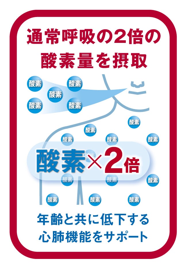 身体の血液やリンパ液に溶け込む酸素の合わせ、呼吸からもたくさん取り入れることができます。