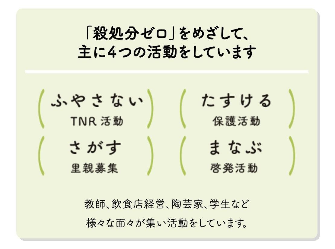 NPO法人ねこと人と地域のいのちをつなぐ会。