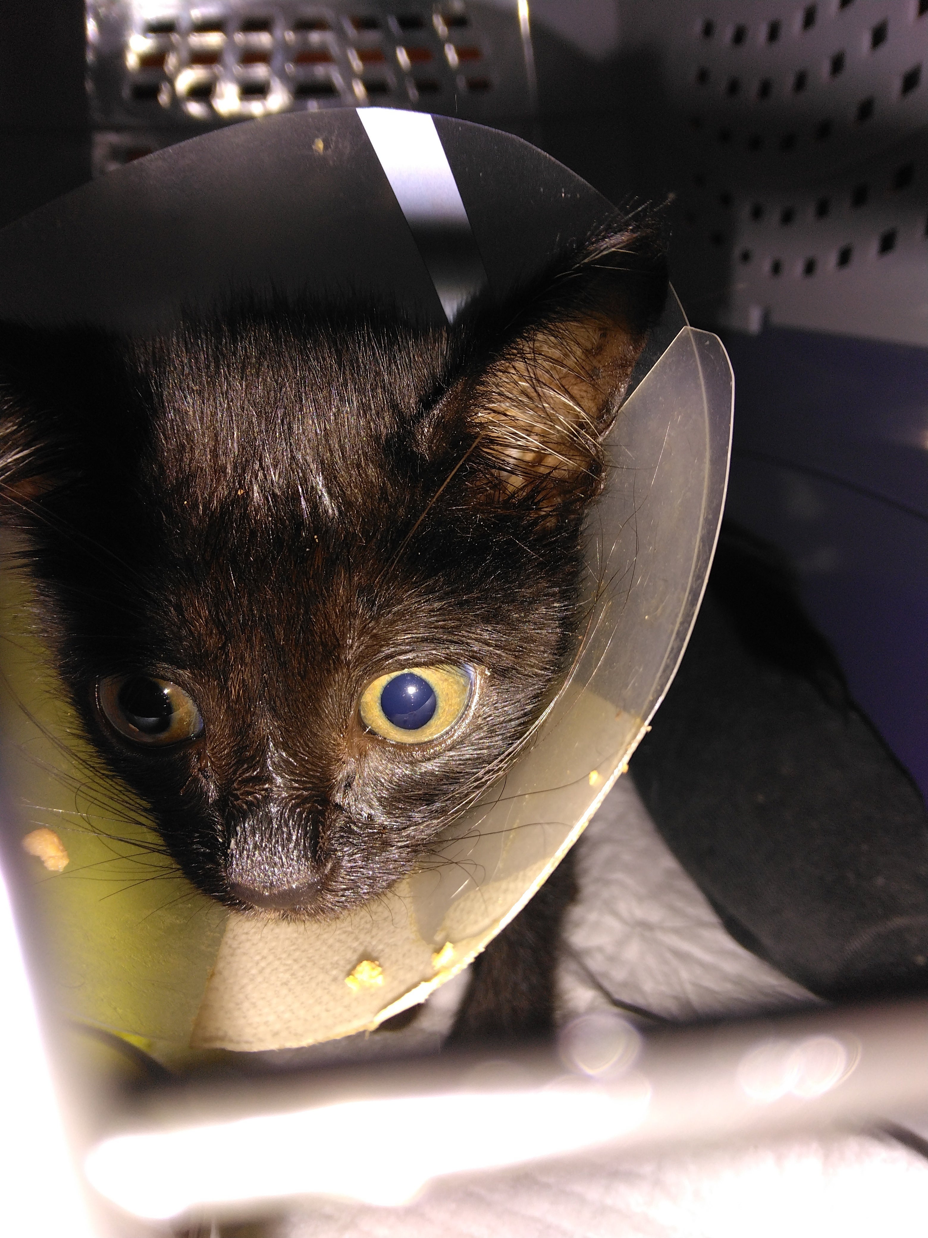 読谷村内でまた、轢き逃げされた仔猫ちゃんを緊急保護。複雑な手術も無事に終え、養成しています。今後も定期的な検診と、2ヶ月後に埋め込んだ金具の取り外し。血液検査等は後回しで緊急手術を優先しました。ご支援ありがとうございます。