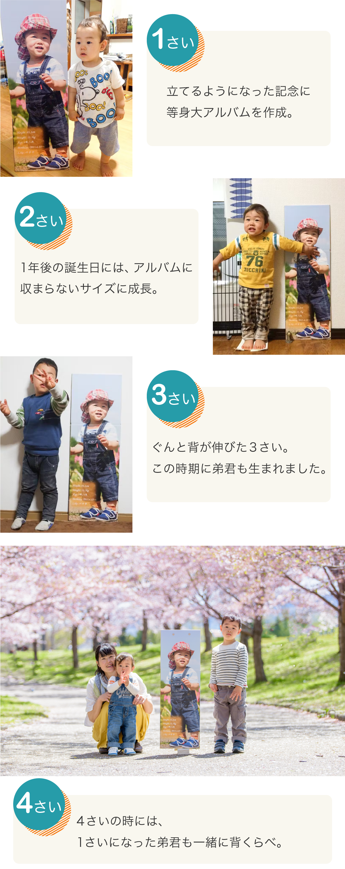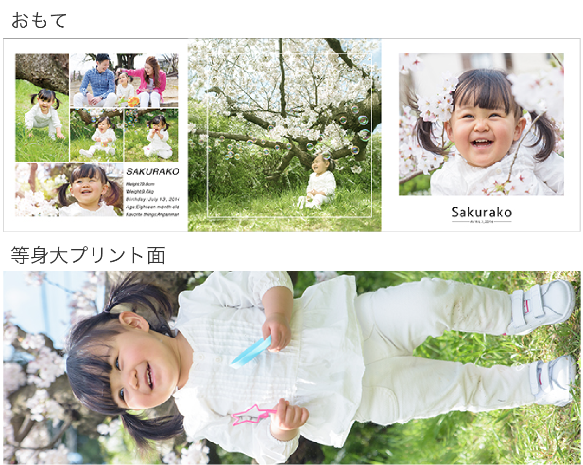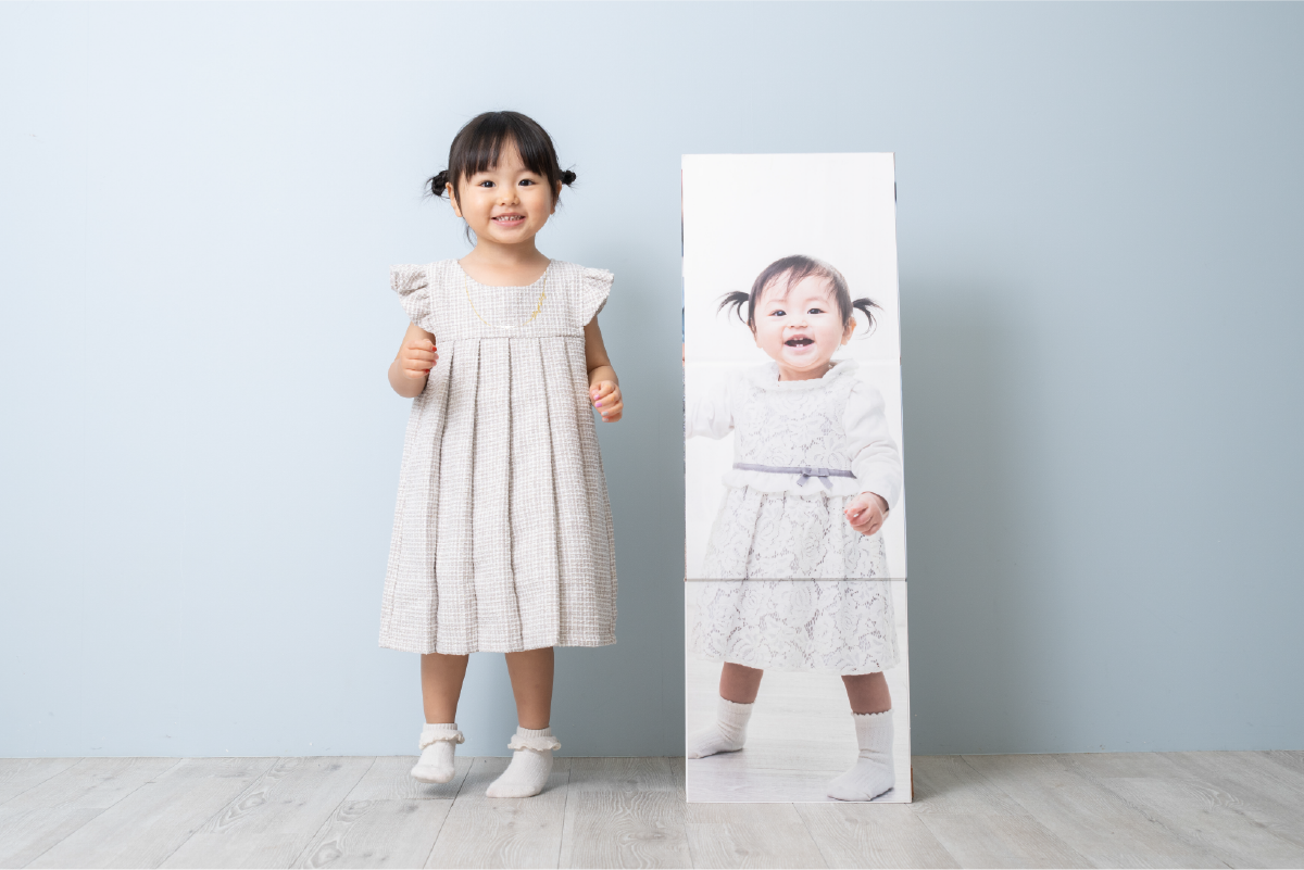 等身大アルバムは、幼い時のかけがえのない瞬間を身長そのままで残すことができる特別なアルバムです。