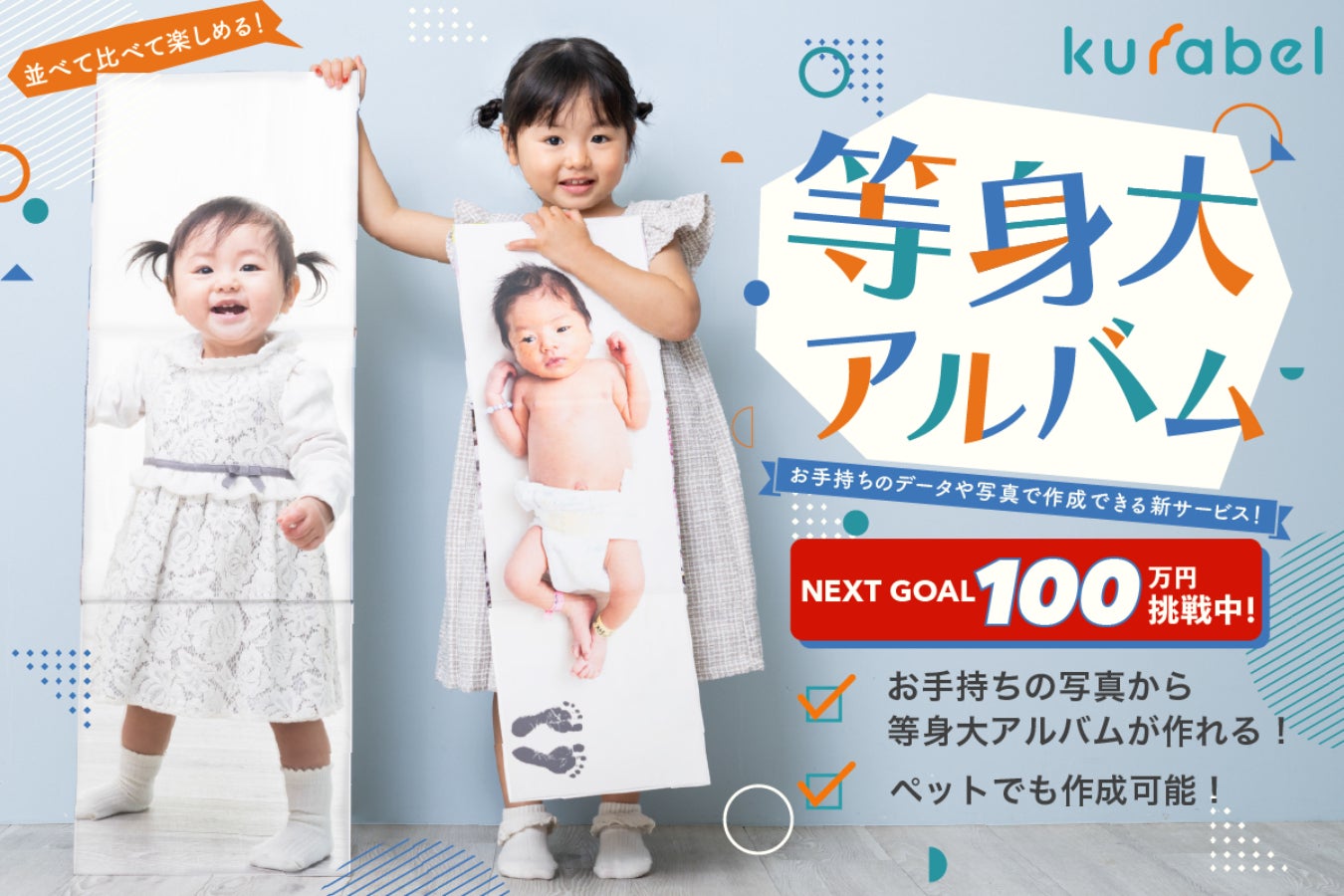 様々なグッズの作成をしてきましたが、子ども時代の自分と並ぶことにより「大きくなったね」と家族や友達と成長を肌で感じる感動を体感して頂くことができる『kurabel』はそんな写真の良さを余すことなく詰め込んだアルバムであり、