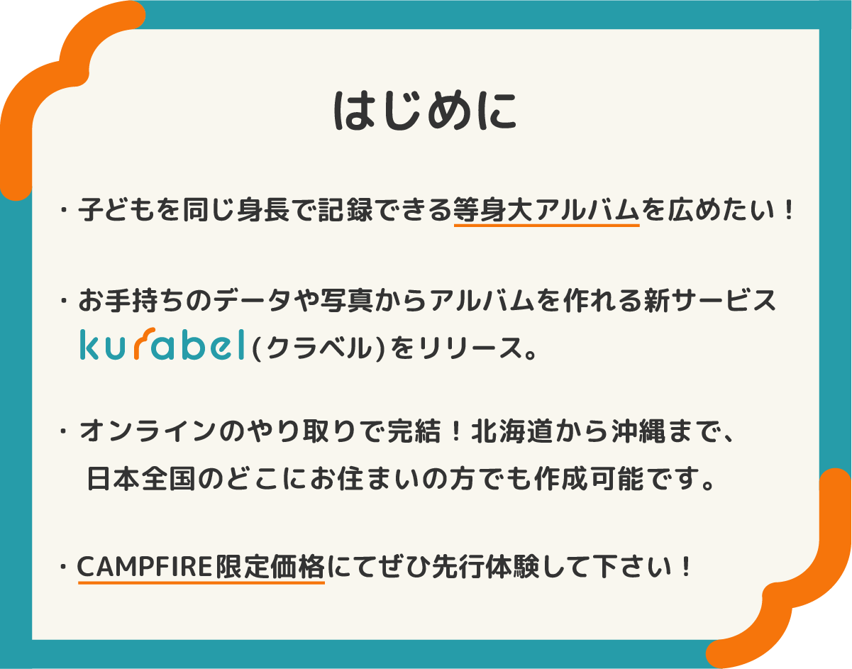 kurabelを通して、お子様の思い出が一生残る素敵なアイテムを提供できることを心から嬉しく思っています。