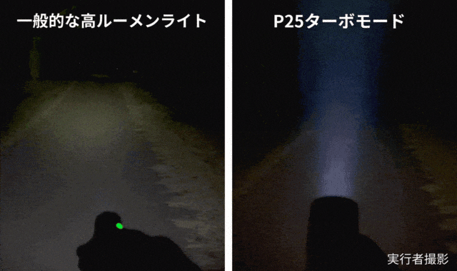 「P25」は照射範囲が広い上に、近くから遠くまで広角に照らすことが出来ます。