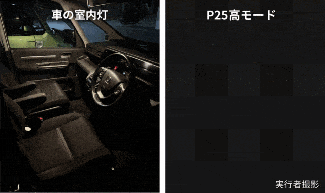 P25は車や一般的な高ルーメンライトと違い、超広角で照射範囲が広いため近くから遠くまで明るく照らすことが出来ます。