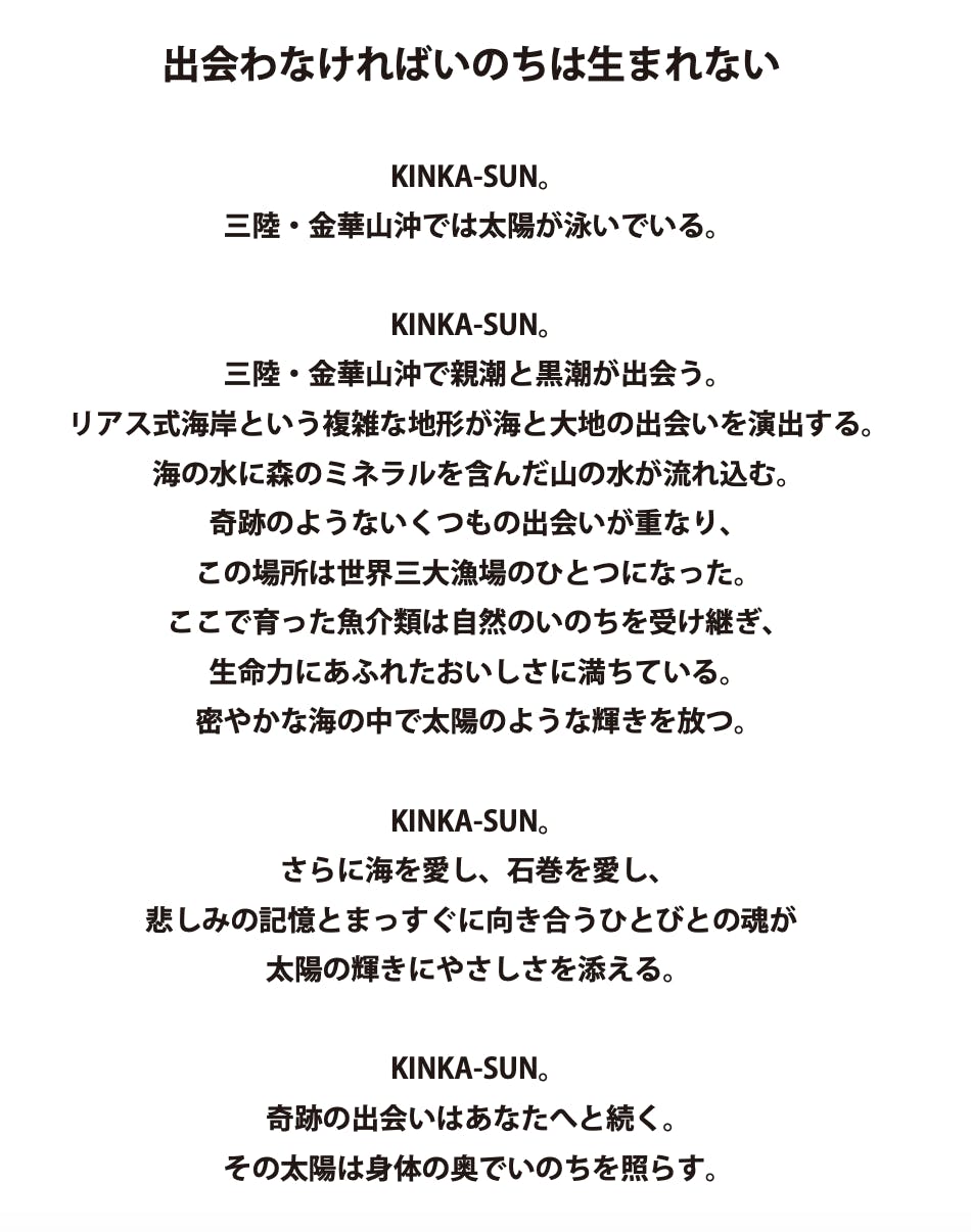 そんな想いを、KINKA-SUNのコアメッセージに込めました。