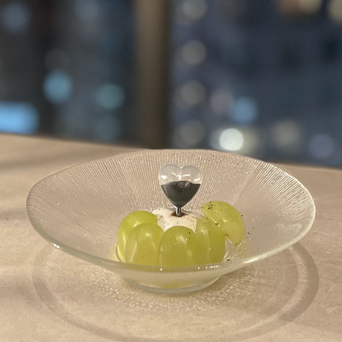 チーズはブラッターチーズ、フルーツはレッドグローブ(種無しの葡萄)を使用しております。