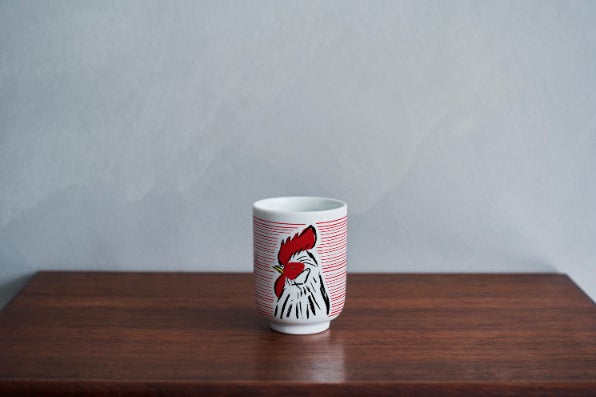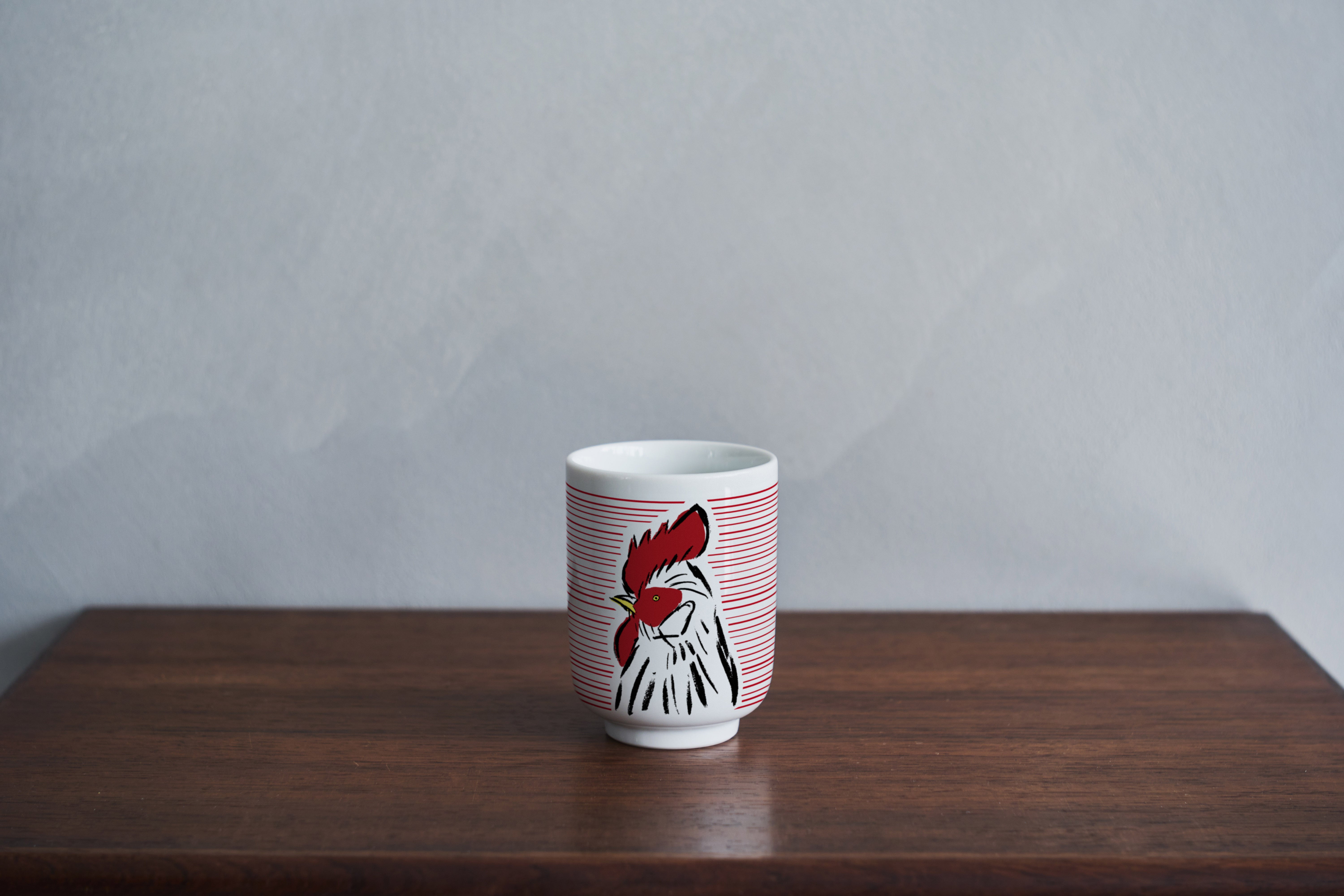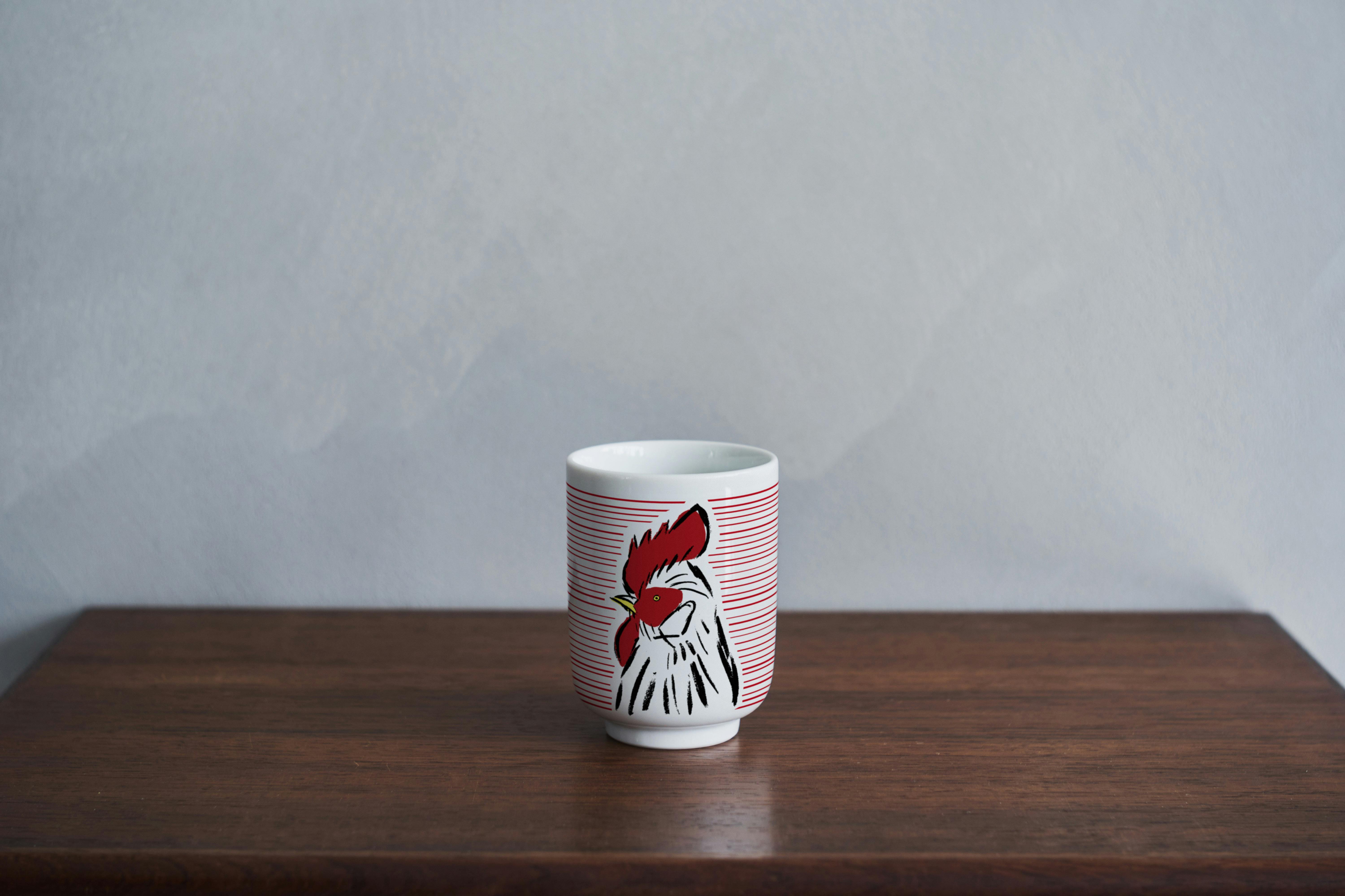この湯呑みには、ご覧のようにニワトリをデザインしました。