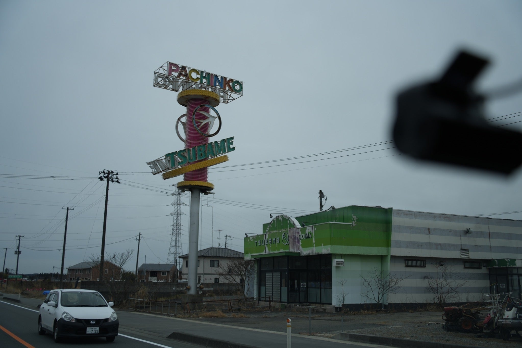 以前は福島第一原発が見えた国道六号線。多くの建物は解体され、空き地になっていますが、当時のまま残された建物もありました。