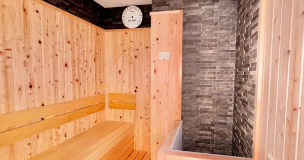 滞在中は何度でも入り放題のサウナと人工温泉!