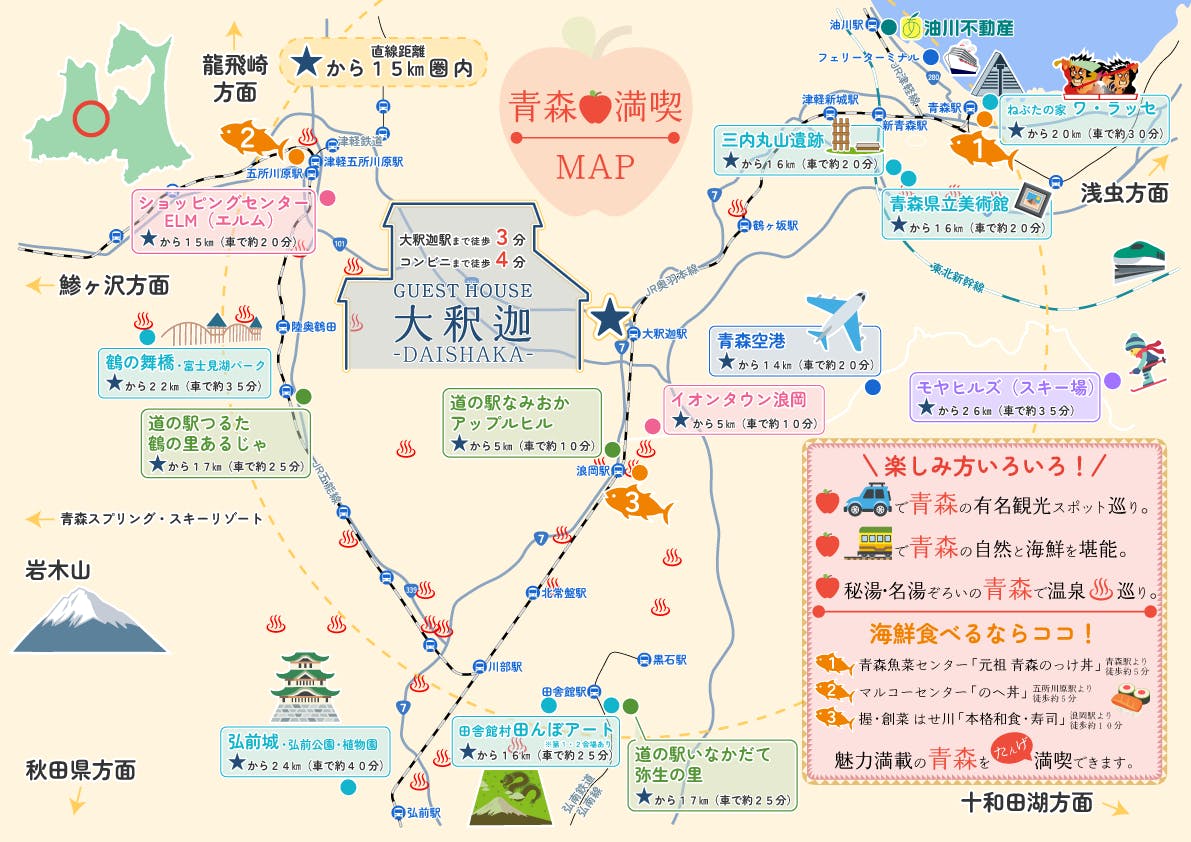 このプロジェクトの背景には、青森の魅力を広めるための想いがあります。青森は美しい自然環境や豊かな農業資源を持っていますが、都市部への人口流出が進んでいます。ゲストハウスの拠点は丁度観光地の中心に位置しています。ここから青森の魅力を再発見し、多くの人にその素晴らしさを伝えることで、青森の活性化に貢献したいと考えています。