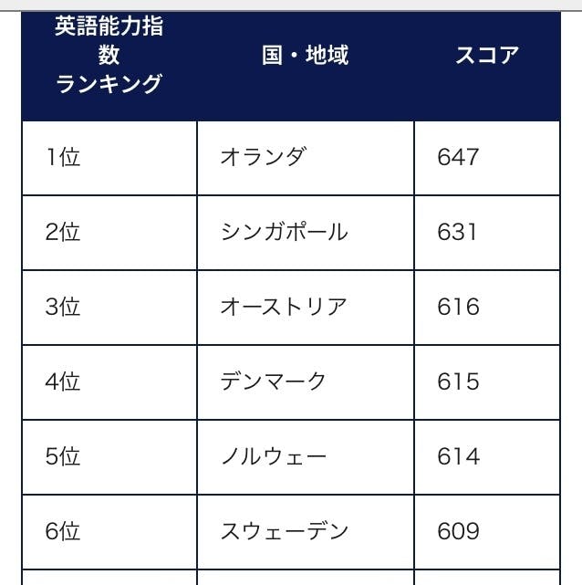 (EFエデュケーション•ファーストのEF EPI英語能力指数より抜粋しました)