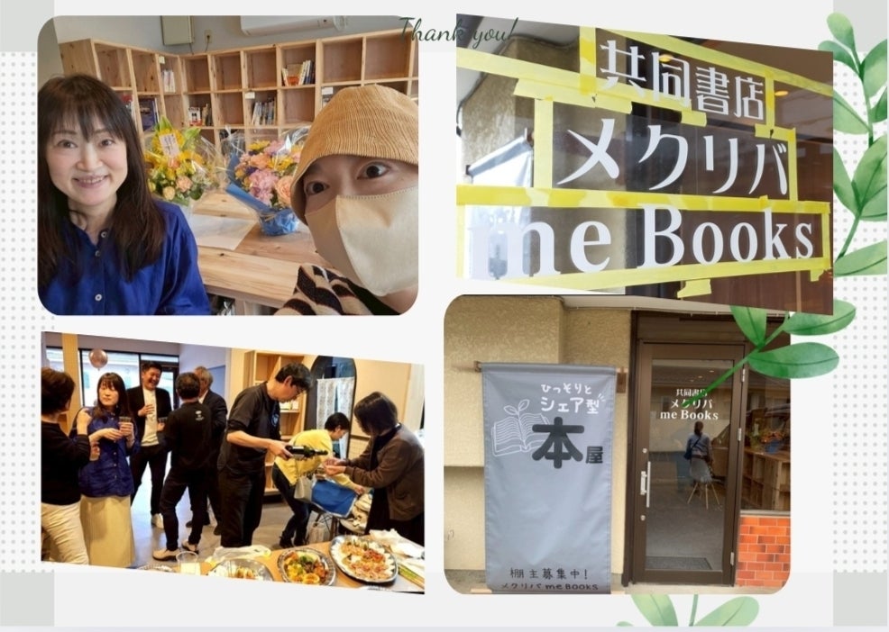 2025/06/30 08:09皆様、またまた、かなり間があいてしまいましたが、いつも見守ってくださりありがとうございますかなり暑くなってきましたが、相変わらず慌ただしい毎日を過ごしています。準備期間もそうでしたが、1週間があっという間で毎週驚いています(^.^)バタバタでオープンした時の写真を追加したいと思います左上の棒みたいなものは、お店のドア横のガラス部分の真ん中にあるアルミみたいな部分ですが、記録?用(笑)に載せておきますオープン前日は強い雨の予報だったので、前日はペンキを塗るのに適さないというのど、2日前の夕方、急遽、脚立に乗って塗っていました。塗り進めると楽しくなってしまい、もっとやりたかったのですが、手近に塗れる場所がなかったので、この部分だけで終了しました^_^またできそうな部分見付けたら、やってみます^^オープン日は、結構強い雨が降が降って一瞬ガッカリしましたが、雨なのに日が照っていて、照り雨は縁起良いときいたことがあるので、ヨシ!と思えることができました(笑)右下の写真は、この日ケータリングをお願いした【みぃこさんの台所】のマツコさんと、ボブさんとお料理です見た目も食欲をそそりますが、味もとても美味しくて皆さんにお褒めいただき、改めてみぃこさんの台所にお願いして良かったと思いました(^^)素敵なお花もありがとうございました♪右上と左下の写真は創業スクール同期の、たまちゃん♪忙しいのにオープン日を覚えていてくれてご主人と顔を出してくれました!双子ちゃんのママになるとのことで、幸せそうなご夫婦の様子が見れて幸せな気分に(*^^*)ご主人も、とっても優しそうな方で、たまちゃん良かったね♪段々双子ちゃんのお母さんの顔になってきた、素敵なたまちゃんが顔を出してくれたくれたことも縁起よいなぁと勝手に喜んでいました(笑)沢山の方々からのご支援でこの日を迎えられ、身近な皆さんの顔もこの日見れて、皆で乾杯できたことも、一生忘れられない縁起の良い日になったと思いますこれからが大変だと思いますが、これからも見守ってくださると、心強いですし励みになりますので、今後とも宜しくお願いいたします。皆様、暑い日が続くと思いますが御自愛ください。メクリバmeBOOKSあらい もっと見る