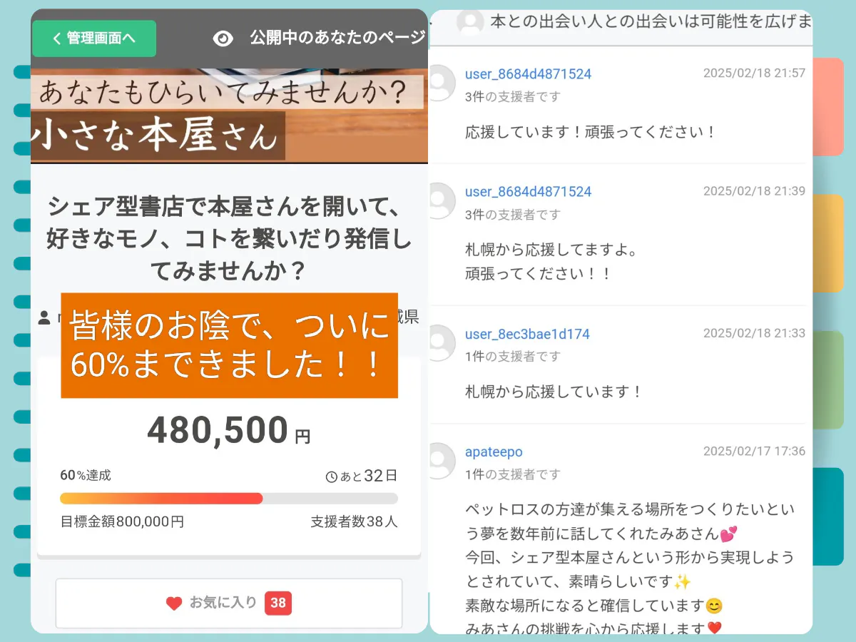 (少しづつご支援コメントをご紹介させていただいています)