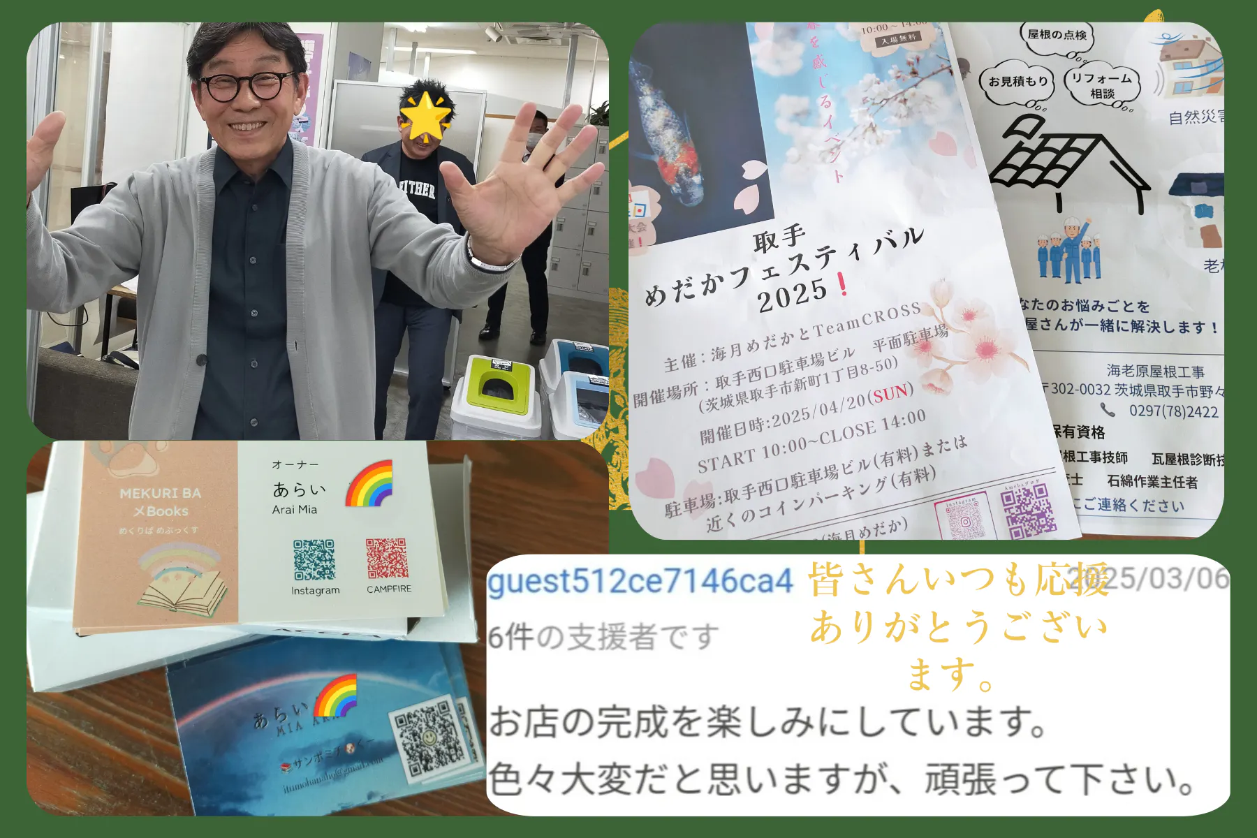 今回も創業スクールの先輩や、親類、ワンコママさん、神奈川県の方からご支援いただきました!!もう本当に有難くて感謝しきれません(ジーンとして)