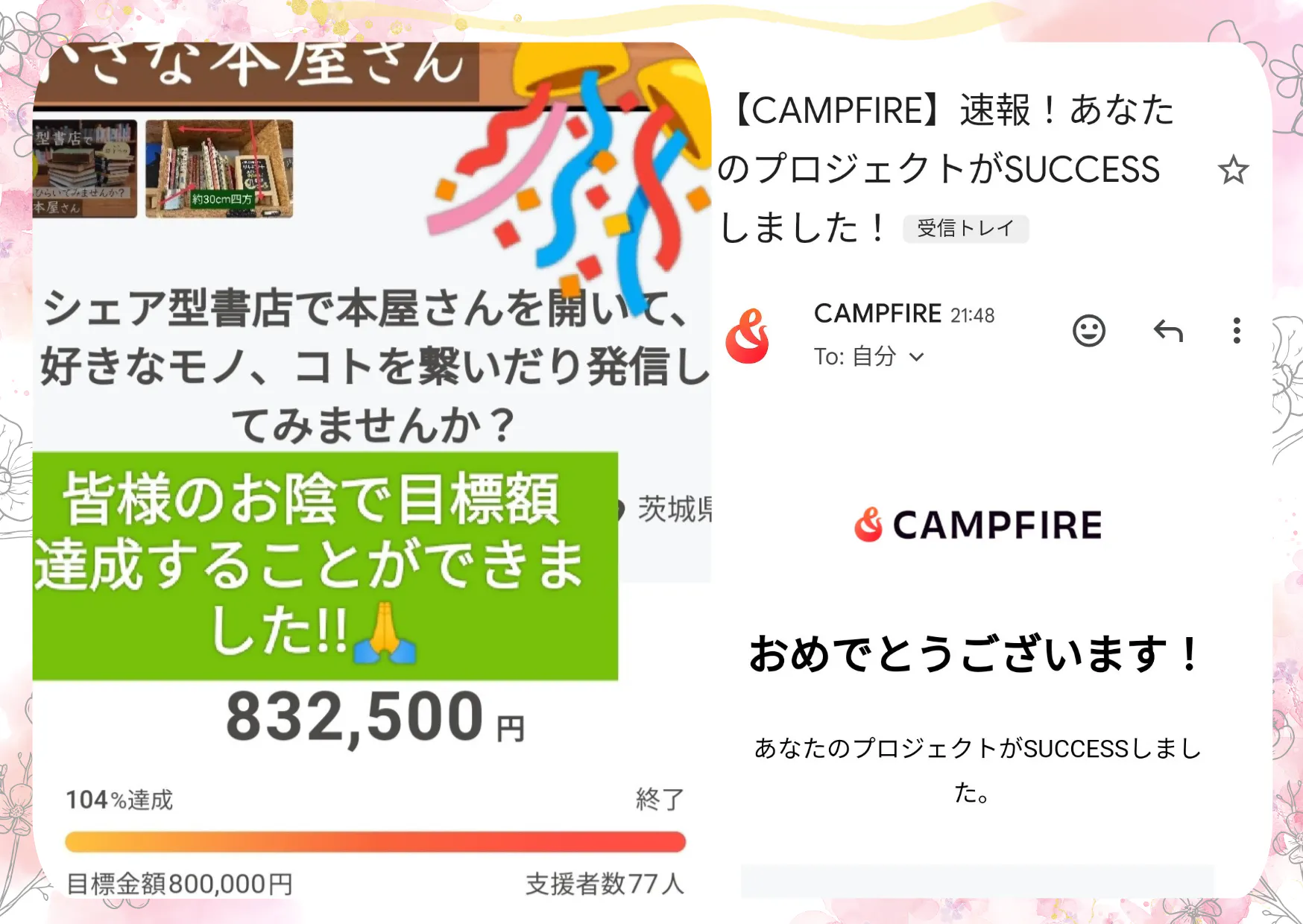 ですが皆様のお陰で、目標額に達成しSUCCESSすることができ感無量で、胸がいっぱいです!!